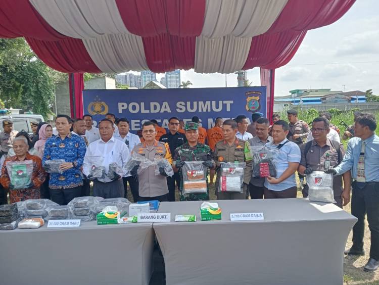 Adapun barang bukti narkotika yang dimusnahkan berupa sabu seberat 3,1 kg dan ganja seberat 5,7 kg milik dari delapan orang tersangka yang diamankan personel Sat Narkoba Polrestabes Medan.