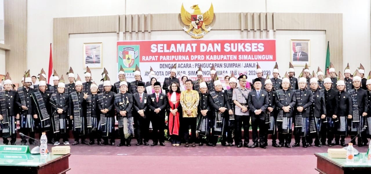 Sebanyak 50 orang Anggota DPRD Simalungun Masa Jabatan 2024-2029, hasil pemilihan legislatif dalam Pemilihan Umum (Pemilu) yang berlangsung dalam Pemilihan Umum (Pemilu) pada bulan April 2024 lalu mengucapkan sumpah/janji.