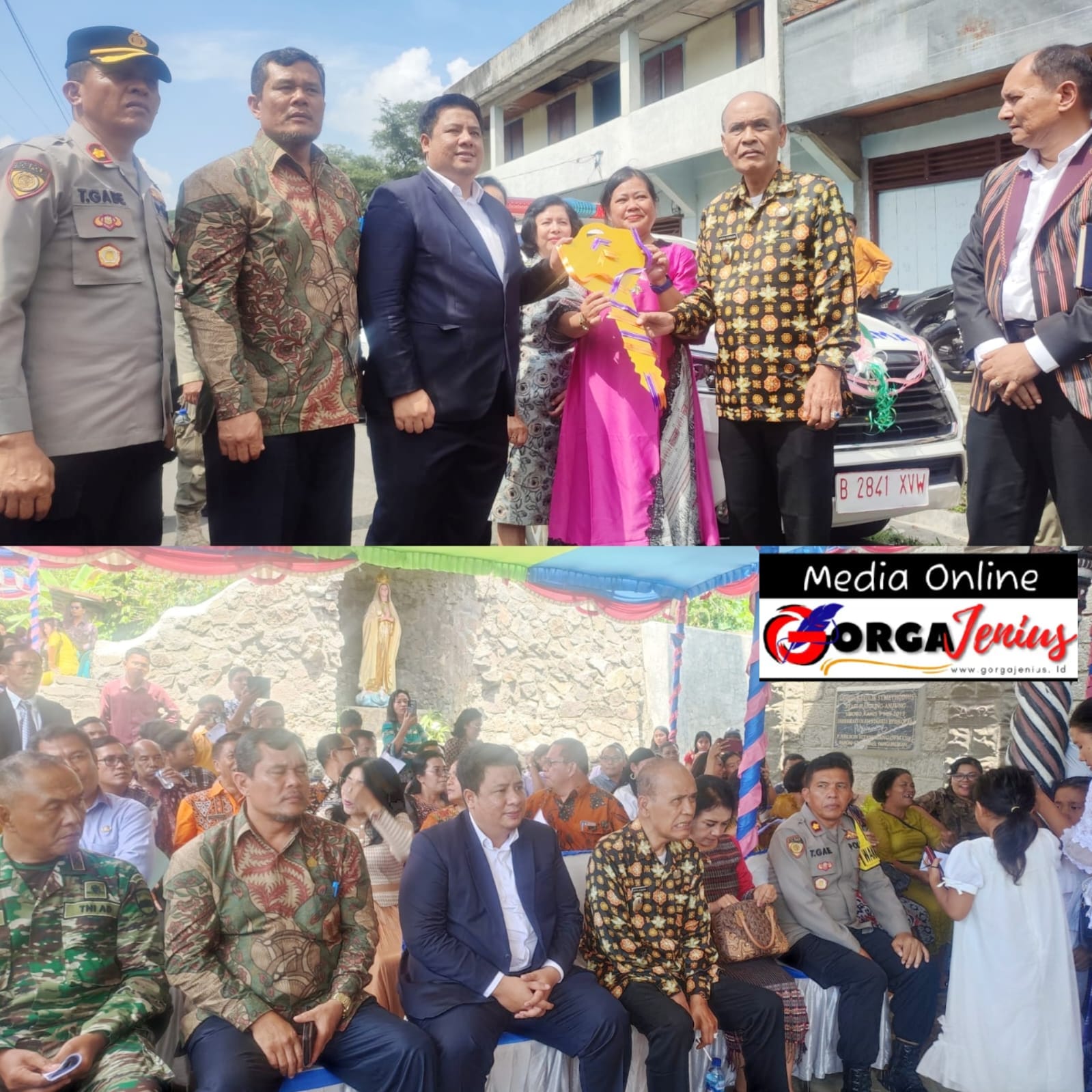 Bantuan mobil ini langsung diserahkan Bupati Samosir Vandiko Timotius Gultom didampingi Wakil Bupati Samosir Martua Sitanggang, diareal Gereja Katolik Stasi ST.Methodius Sianjung-anjung Desa Siboro kecamatan Sianjur Mulamula, Kabupaten Samosir, Jumat (26/4/2024).