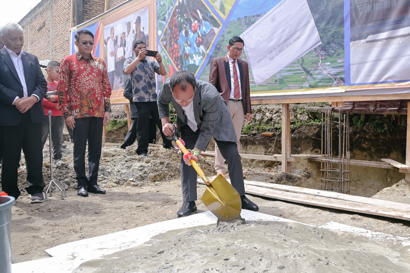Bupati Humbahas Dosmar Banjarnahor, SE meletakkan batu pertama pembangunan Gereja Bethel Indonesia (GBI) Jalan Merdeka Doloksanggul, Jumat (7 Juli 2023).
