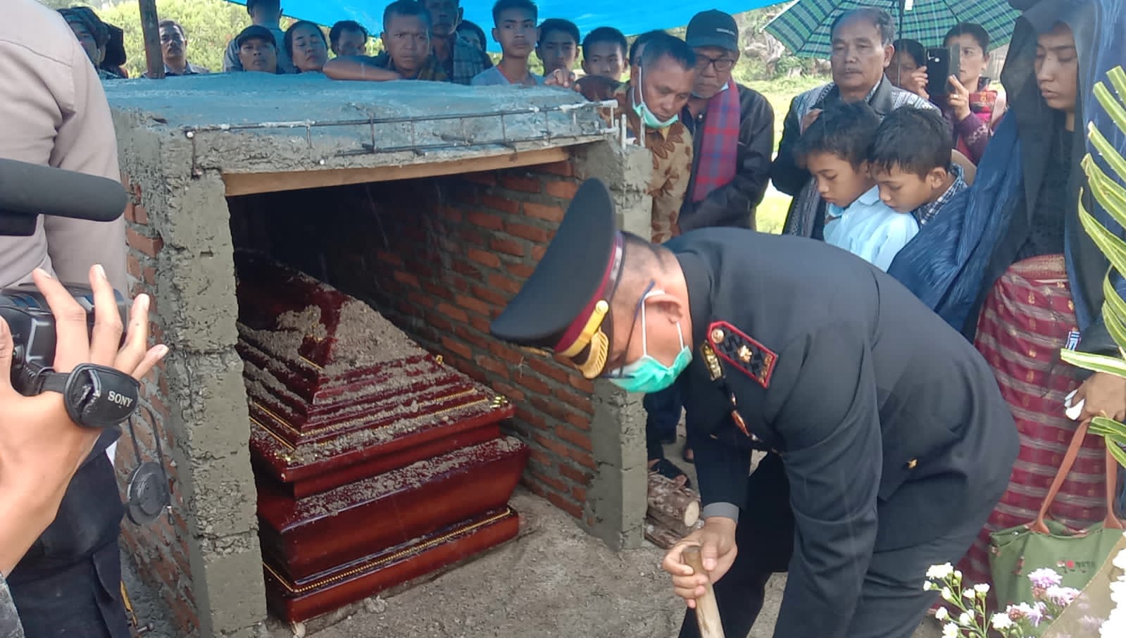 Kapolsek Tanah Jawa, Kompol M. Nainggolan, SH, M.Si., bertindak sebagai Inspektur Upacara (Irup), mewakili Kapolres Simalungun, menghadiri bersama perwira, brigadir dari Polres Tapanuli Utara, keluarga Almarhum, dan masyarakat setempat. Prosesi pemakaman diwarnai dengan hujan, namun tidak mengurangi khidmat acara pemakaman tradisi kepolisian yang berlangsung dengan baik dan lancar.
