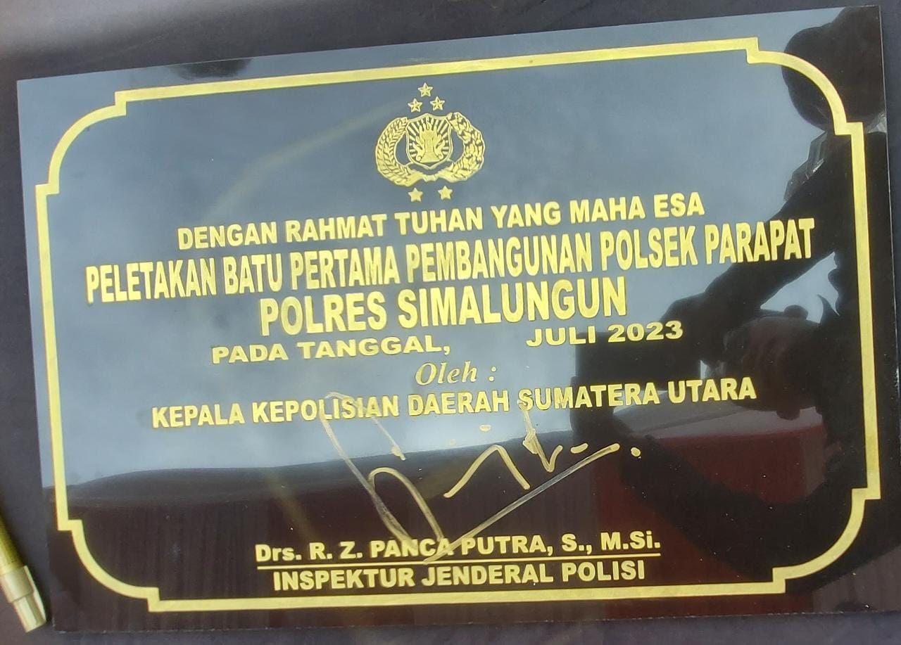Kapolres Simalungun, AKBP Ronald F.C Sipayung, S.H., S.I.K., M.H., saat mengawali kata sambutannya dalam acara peletakan batu pertama untuk revitalisasi/ pembangunan Polsek Parapat pada Selasa, 11 Juli 2022. Bersama unsur Forkopimda dan masyarakat, beberapa waktu lalu, menyampaikan kilas balik ‘Catatan Sejarah Berdirinya Polsek Parapat’ dan semua undangan memberi aplaus atas Sejarah yang dapat dikumpulkan Kapolres Simalungun itu.