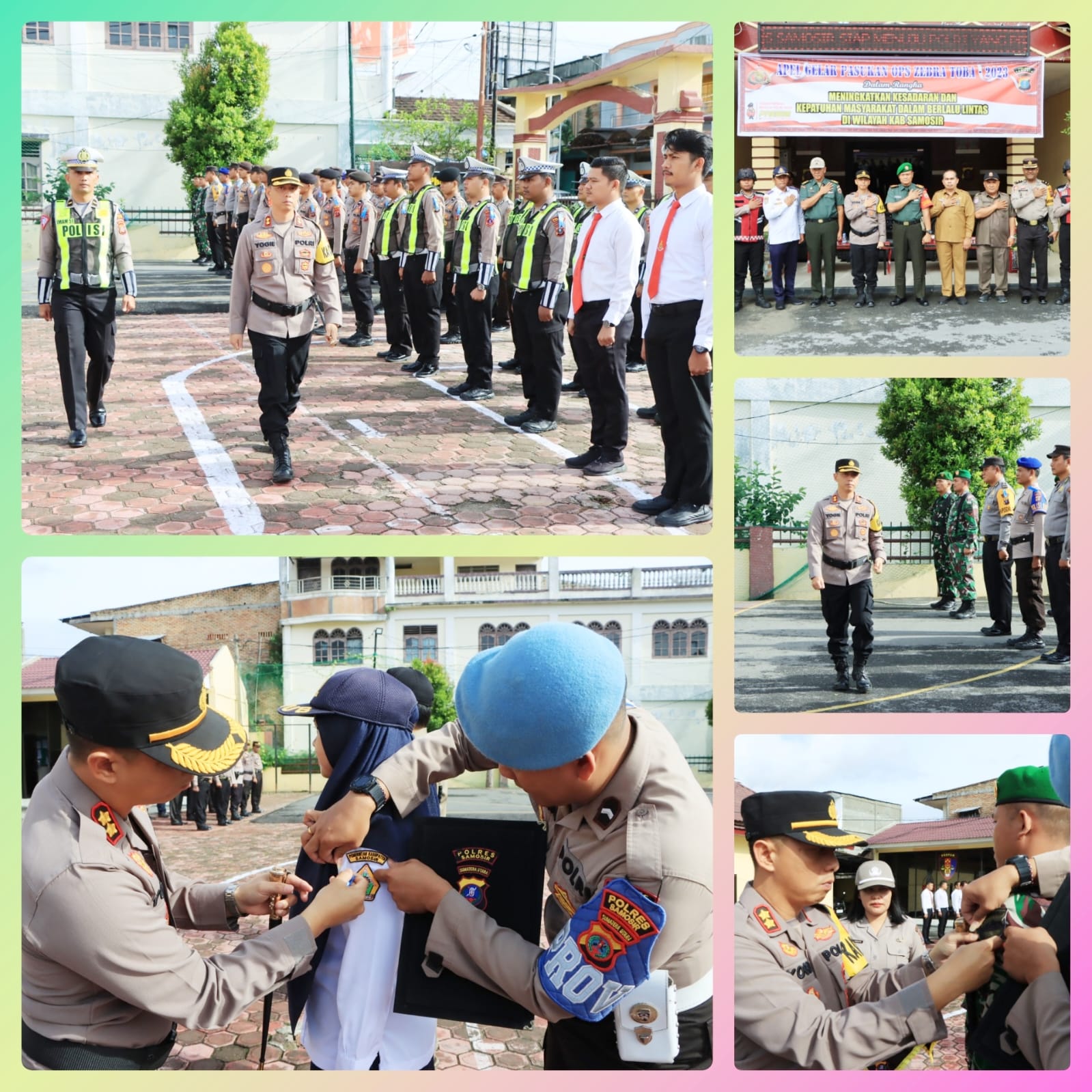 Rangkaian Apel berjalan dengan tertib, melibatkan berbagai tahapan mulai dari laporan Perwira Upacara hingga penghormatan pasukan. Tanda Operasi juga disematkan kepada personel yang akan bertugas dalam Operasi Zebra Toba 2023.
