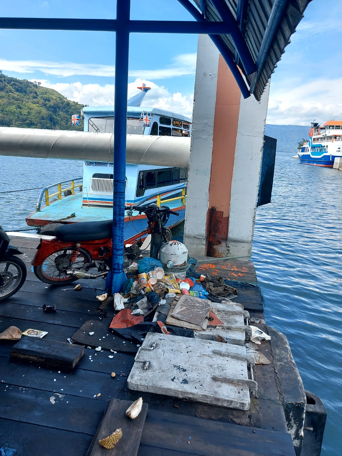 Entah siapa yang peduli dengan Dermaga ini, apakah ASDP dan atau ada mahluk lain yang dengan kebersihan area dermaga dan Danau Toba?.
