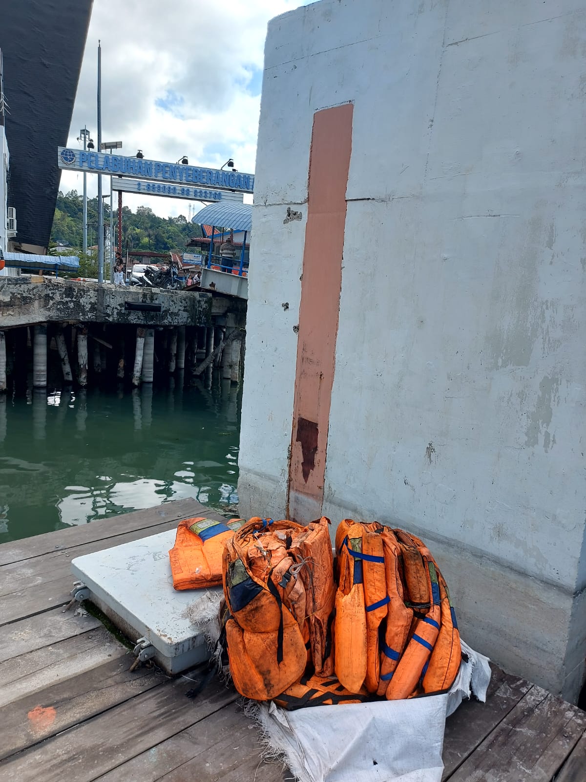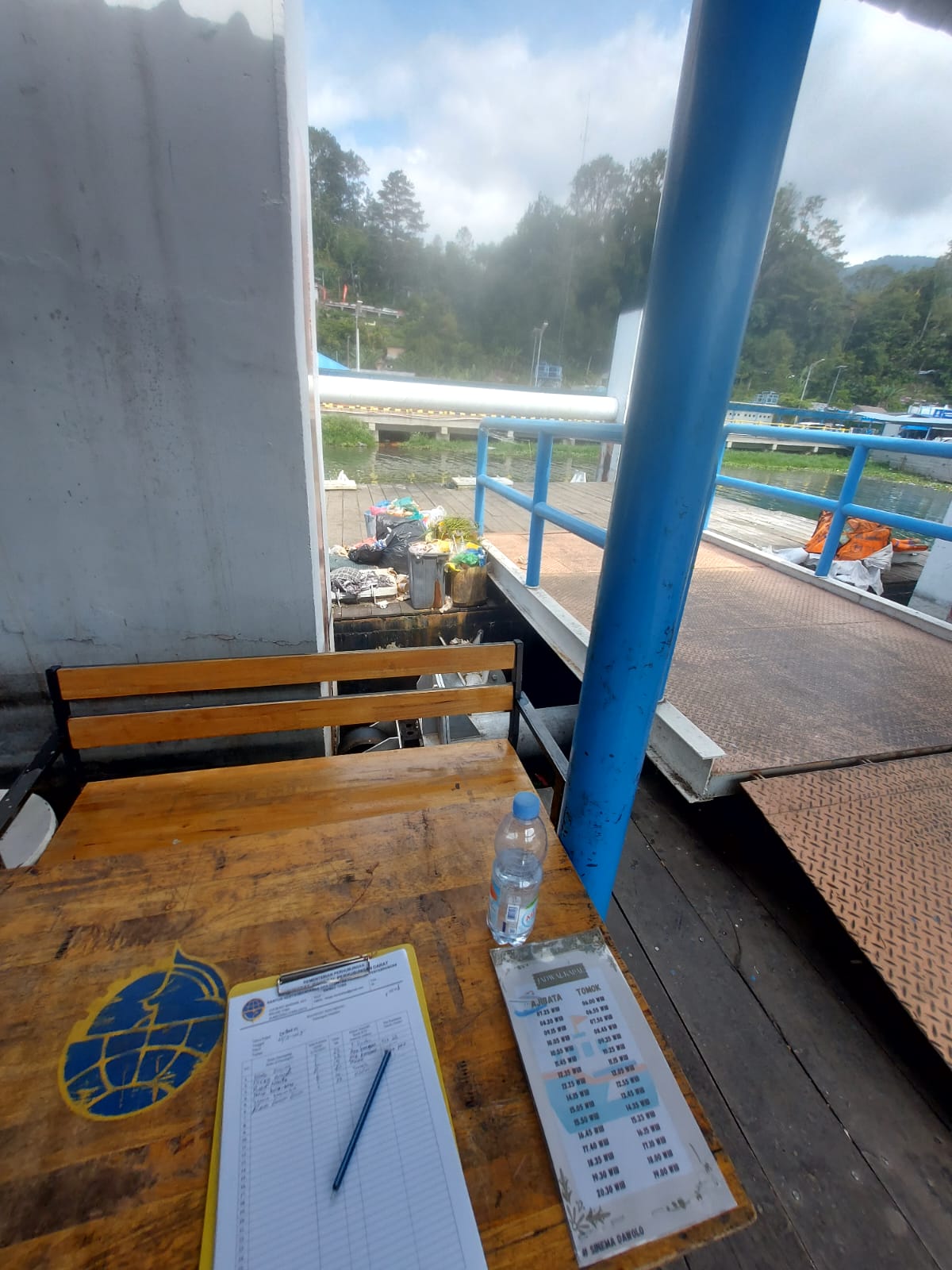 Tumpukan sampah ini ada dibeberapa titik diatas Dermaga dan sepertinya tidak ada yang peduli, baik dari petugas Dinas Perhubungan yang hanya mencatat jumlah penumpang dengan sebuah meja berlatar sampah.