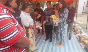 Meja petugas pencatat (manifest) dari Dinas Perhubungan dengan sebuah meja dan kursi berlatar Sampah di Dermaga Ajibata, Kabupaten Toba.