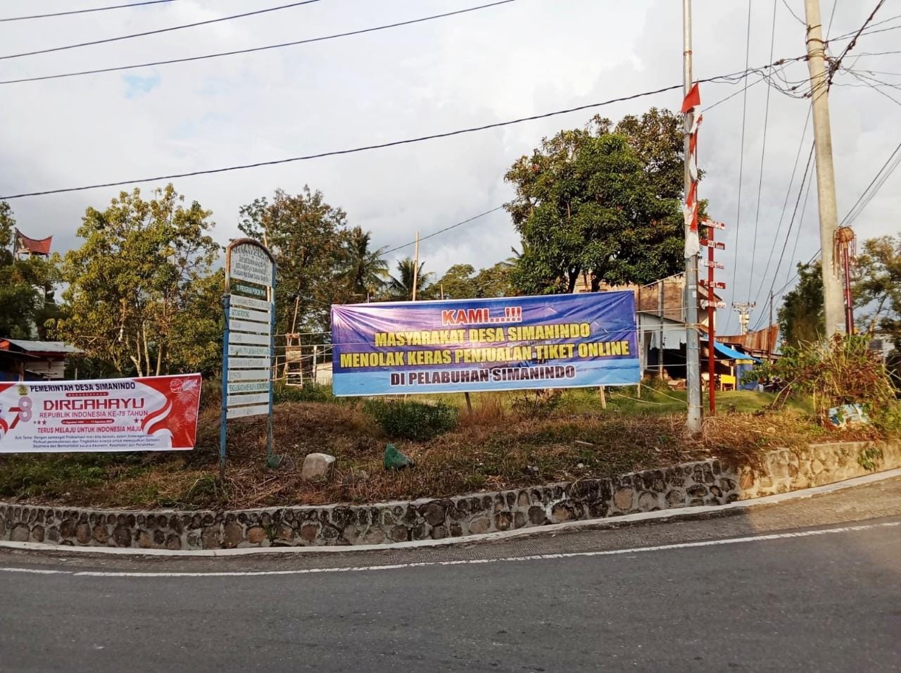 Guna menyikapi kekesalan warga di kawasan Dermaga (Pelabuhan) Ferry di Simanindo, Kabupaten Samosir perihal pemajangan spanduk bertuliskan, “KAMI…!!! MASYARAKAT DESA SIMANINDO MENOLAK KERAS PENJUALAN TIKET ONLINE DI PELABUHAN SIMANINDO” menurut Kepala Kantor Kesyahbandaran dan Otoritas Pelabuhan Penyeberangan (KSOPP) Danau Toba Rijaya Simarmata, “Bahwa sistim tiketing online sudah diatur dalam Peraturan Menteri Perhubungan Nomor 19 Tahun 2020 ttg pelaksanaan tiket online pada angkutan penyeberangan.