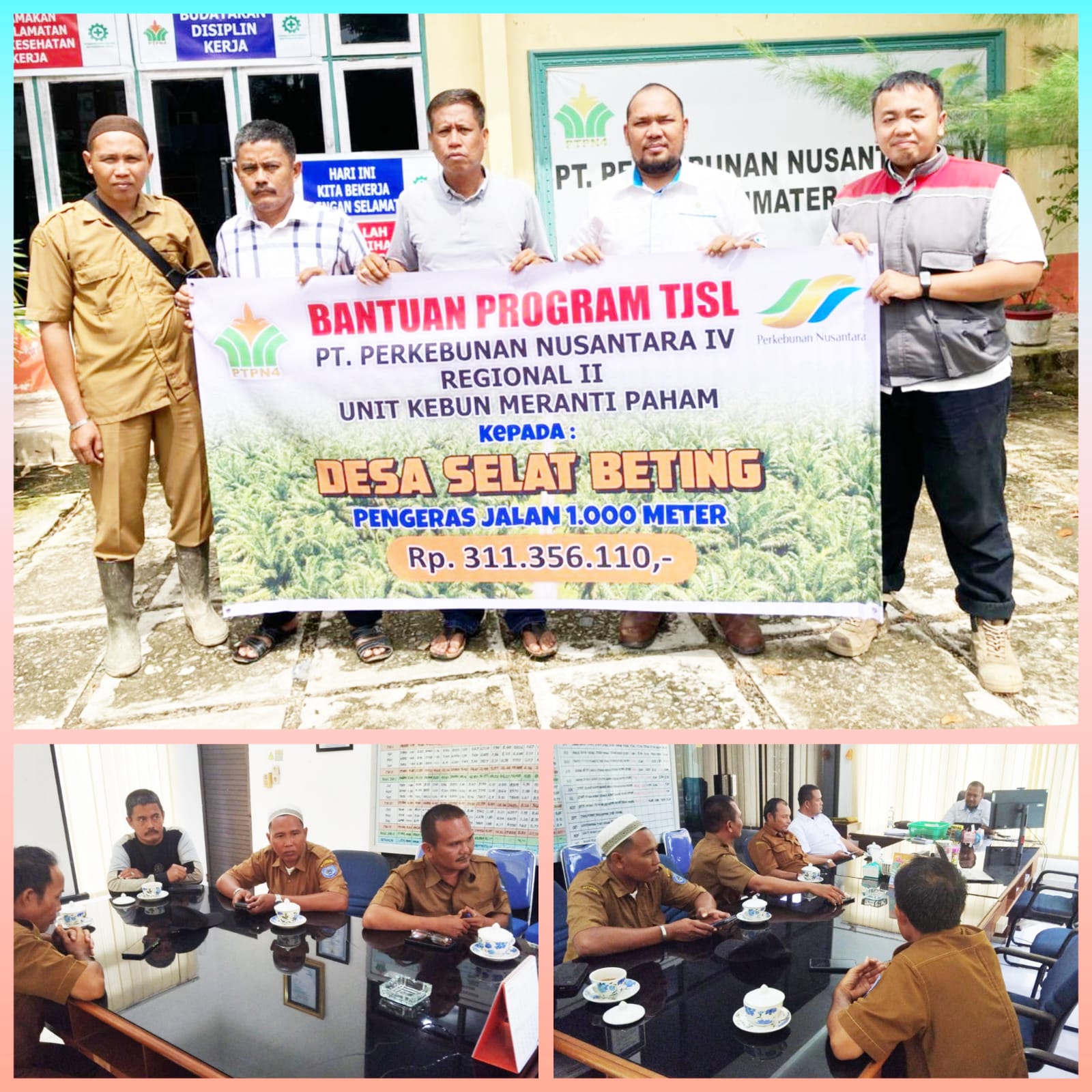 PT Perkebunan Nusantara (PTPN IV) melalui unit Merantu Paham salurkan bantuan Rp 311 Juta untuk Pengerasan Jalan di Desa Selat Beting, Labuhan Batu Desa Selat Beting, Kecamatan Panai Tengah, Kabupaten Labuhan Batu, Sumatera Utara, menerima bantuan sebesar Rp 311 juta.