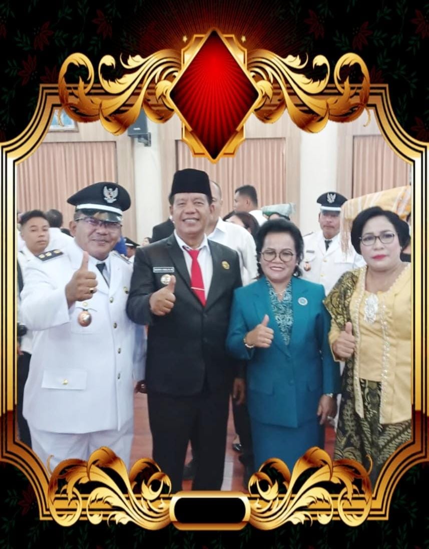 Kepala Desa (Pangulu) Nagori Dolok Simbolon Berlin Simbolon bersama Istri N br Purba diabadikan usai Pelantikan Pangulu oleh Bupati Simalungun Radiapoh H Sinaga.