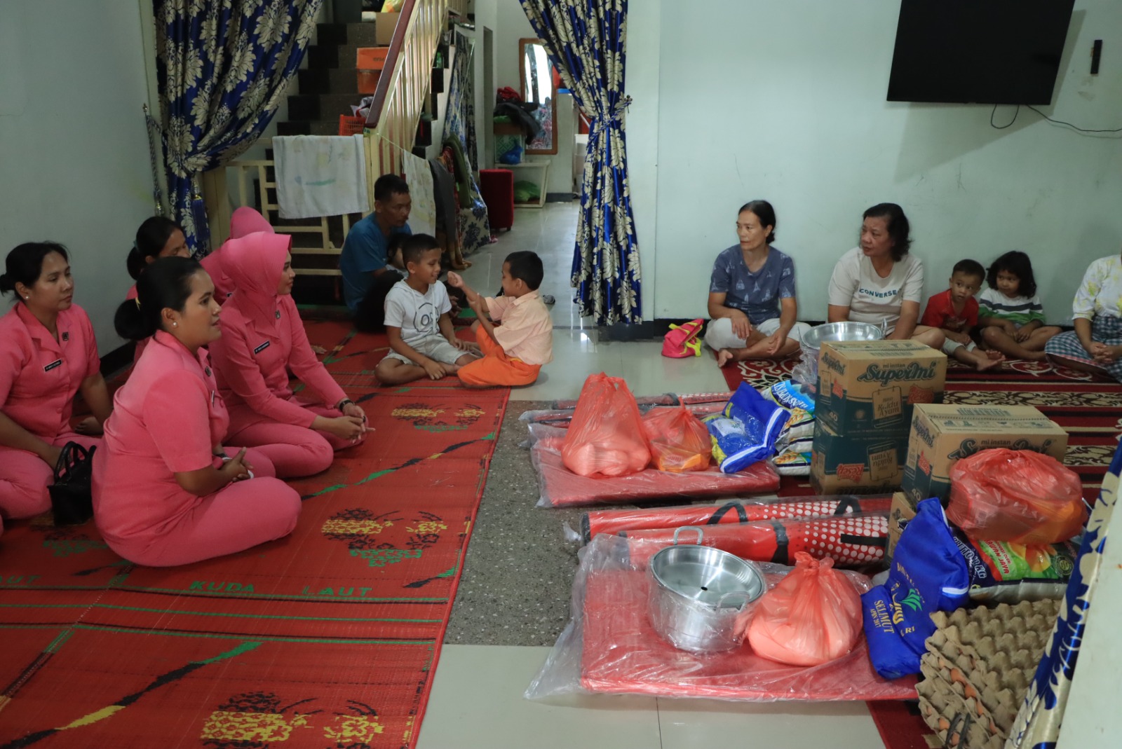 Rombongan dari Bhayangkari Cabang Samosir mengunjungi keluarga B.N dan H.L.N yang merupakan korban kebakaran yang kehilangan rumah dan tempat usaha.