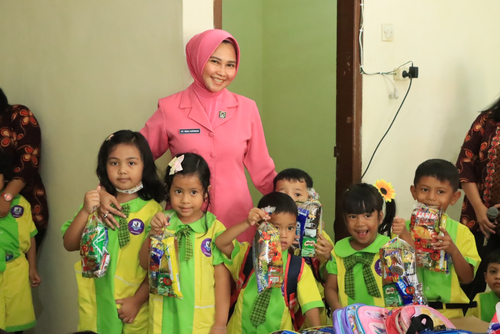 Sementara itu di sekolah TK Rajawali, Ketua dan Pengurus Bhayangkari Cabang Samosir menyapa para guru dan anak-anak.
