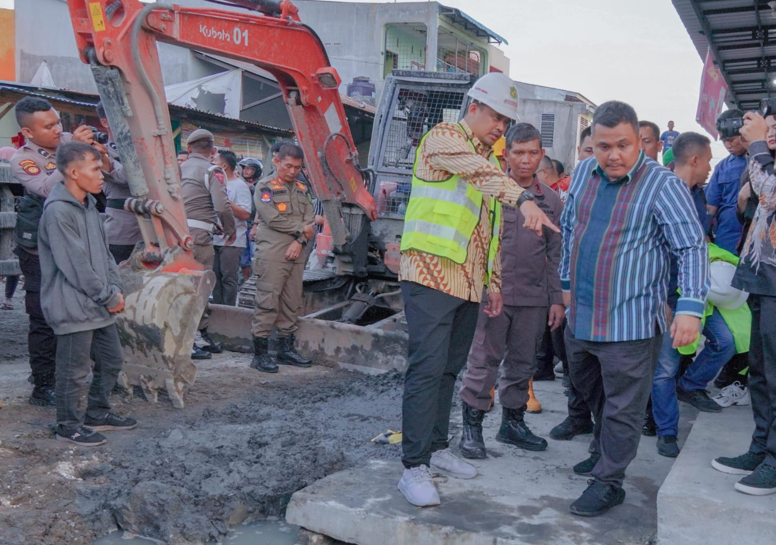 Dalam peninjauan itu, suami Ketua TP PKK Kota Medan Kahiyang Ayu ini didampingi Kadis Sumber Daya Alam, Bina Marga dan Bina Konstruksi (SDABMBK) Kota Medan Topan Obaja Putra Ginting. Saat tiba di lokasi, Bobby Nasution pun langsung melihat beberapa U-ditch yang sudah terpasang.