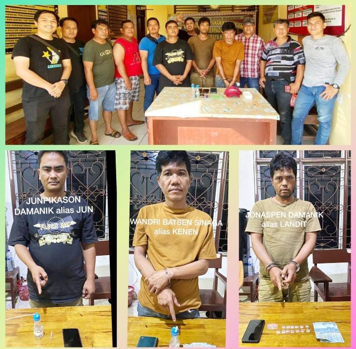 Pada Selasa, 13 Juni 2023, Team Gabungan Sat Narkoba Polres Simalungun Bersama Polsek Raya Kahean telah berhasil mengamankan tiga orang laki-laki dewasa yang tertangkap tangan sedang menggunakan, memiliki, menguasai, menyimpan, mengedarkan, diduga narkotika golongan I bukan tanaman, jenis shabu-shabu. Kejadian ini berlangsung di sebuah gubuk di Huta Tiga Lama, Nagori Ambrokan, Kecamatan Raya Kahean, Kabupaten Simalungun dan di dalam rumah milik Wandri Batsen Sinaga alias Kenen di Huta Panduman, Nagori Panduman, Kecamatan Raya Kahean, Kabupaten Simalungun.