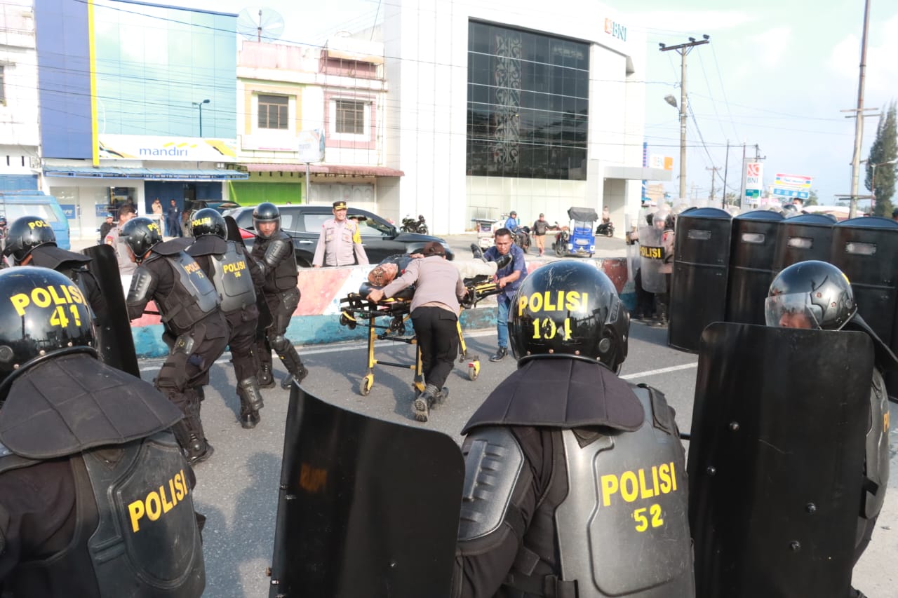 Lebih lanjut Kapolres menyampaikan, “Kita melaksanakan kegiatan latihan tepat berada di Komplek Kantor Bupati Kabupaten Simalungun, berdasarkan hasil beberapa analisa lokasi-lokasi yang berpotensi akan menjadi sasaran demonstrasi yaitu di Kantor KPU, BAWASLU, DPRD, dan Kantor Bupati Simalungun adalah lokasi-lokasi yang memang menjadi sasaran orang-orang tidak puas atau yang ingin menyampaikan pendapat,” ucap AKBP Ronald.