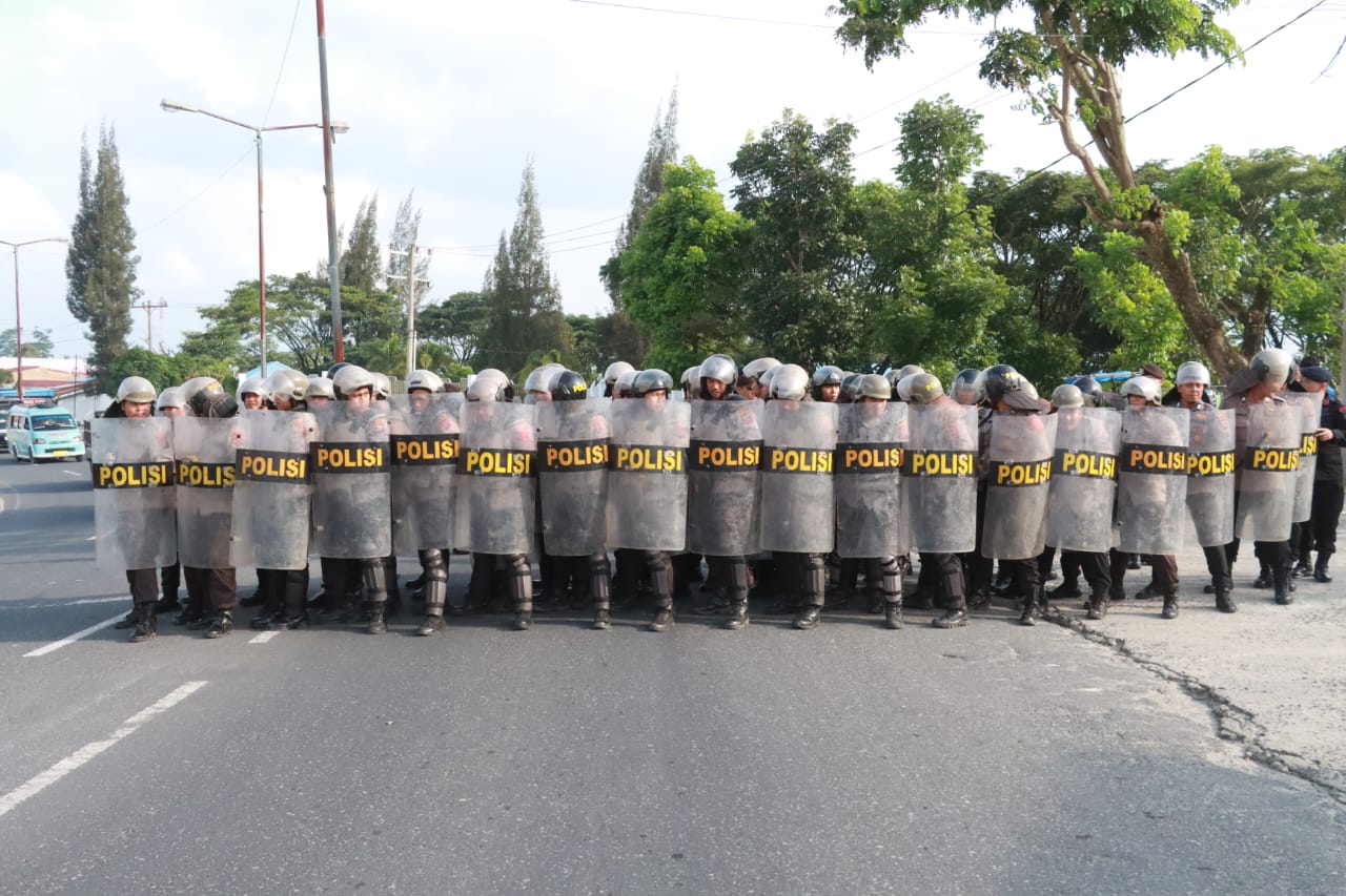 “Kita langsung melaksanakan kegiatan simulasi di lokasi sebenarnya untuk memberikan gambaran sebenarnya bagi kita Polres dan Dalmas (Pengendalian Masa) PHH (Pasukan Huru Hara) dari Brimob sehingga kita bisa memahami, situasi, kondisi, tempat untuk menghadapi masyarakat yang akan menyampaikan pendapat.