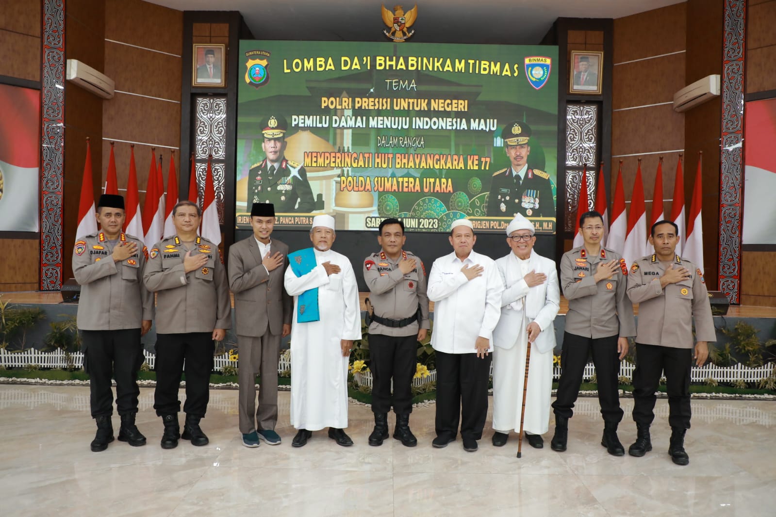 Perlombaan Da’i Bhabinkamtibmas yang mengangkat tema “Polri Presisi Untuk Negri, Membangun Komunikasi Dengan Masyarakat Dalam Rangka Meningkatkan Kamtibmas Yang Kondusif Pada Tahapan Pemilu 2024 di Provinsi Sumatera Utara” itu dibuka oleh Kapolda Sumut Irjen. Pol. Drs. R.Z. Panca Putra Simanjuntak, M.Si, melalui Dir Binmas Polda Sumut Kombes Pol Jafar Sodiq, S.H., M.M., M.Han, di Aula Tribrata Mapolda Sumut.