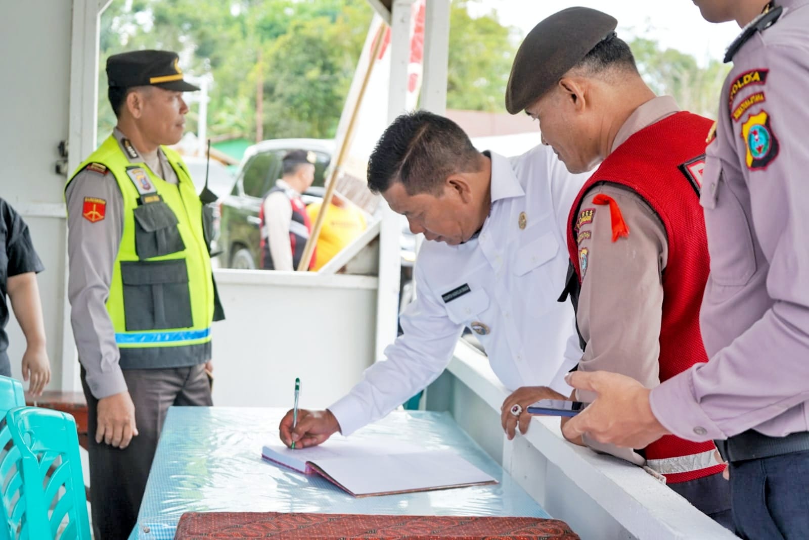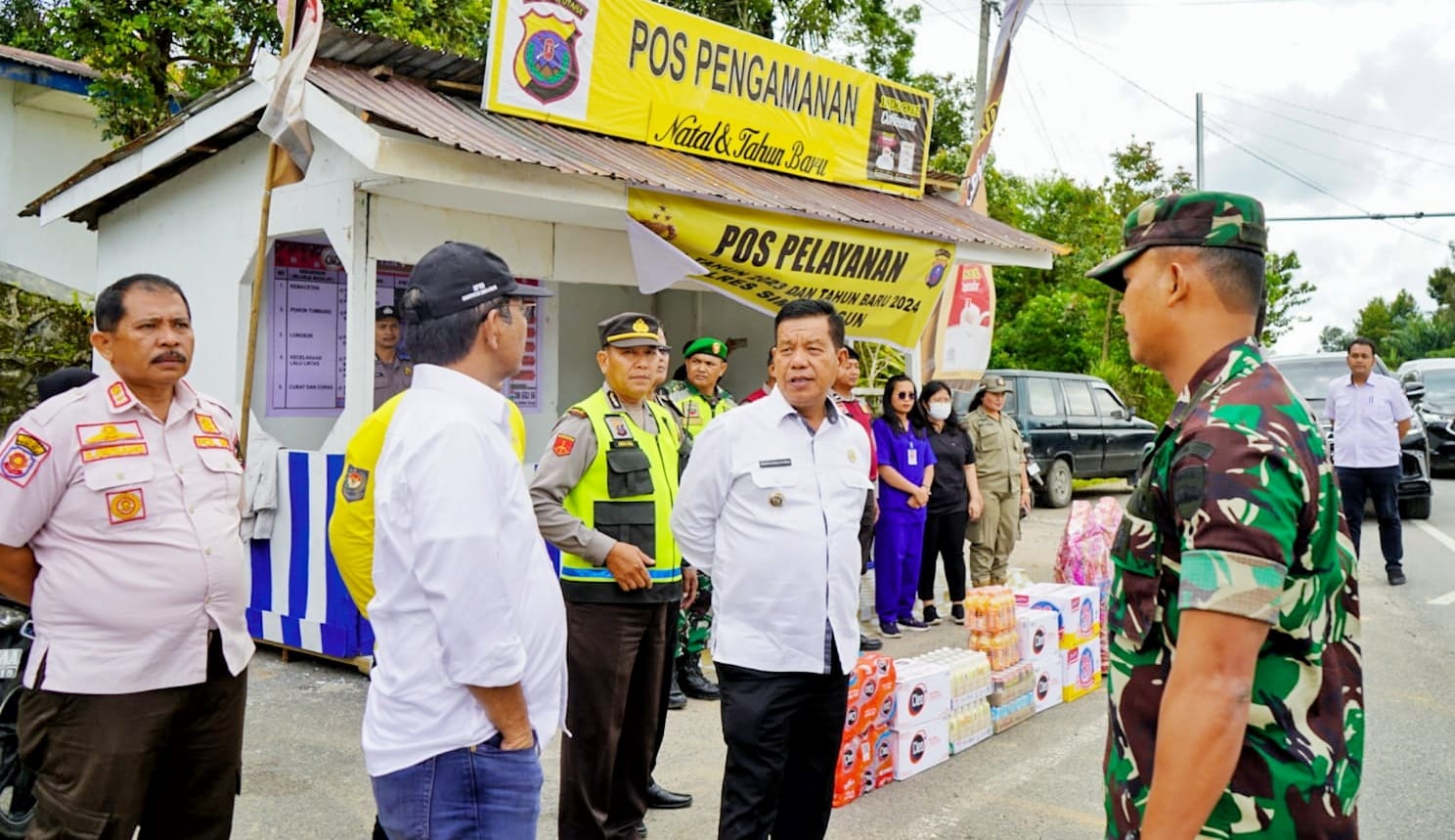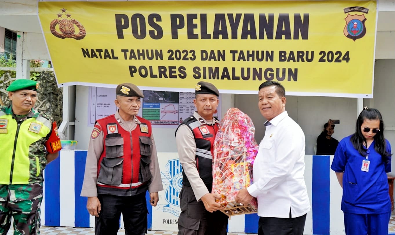 Bupati Simalungun Radiapoh Hasiholan Sinaga bersama Forkopimda meninjau kesiapan Pos Pengamanan (Pos PAM) dalam rangka pengaman arus mudik dan balik saat libur Natal Tahun 2023 dan Tahun Baru 2024 (Nataru) di wilayah Kabupaten Simalungun, Jum’at (22/12/2023).