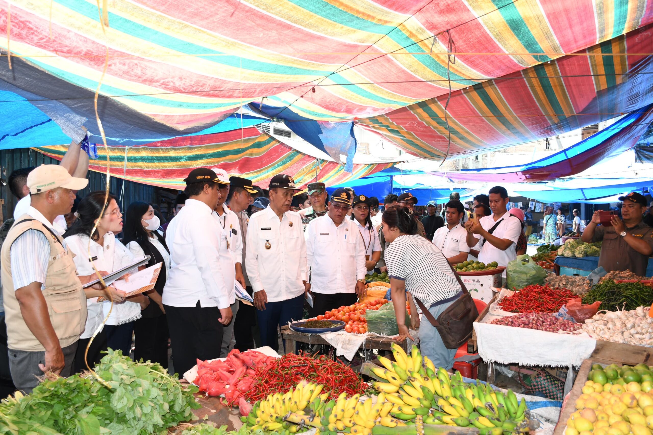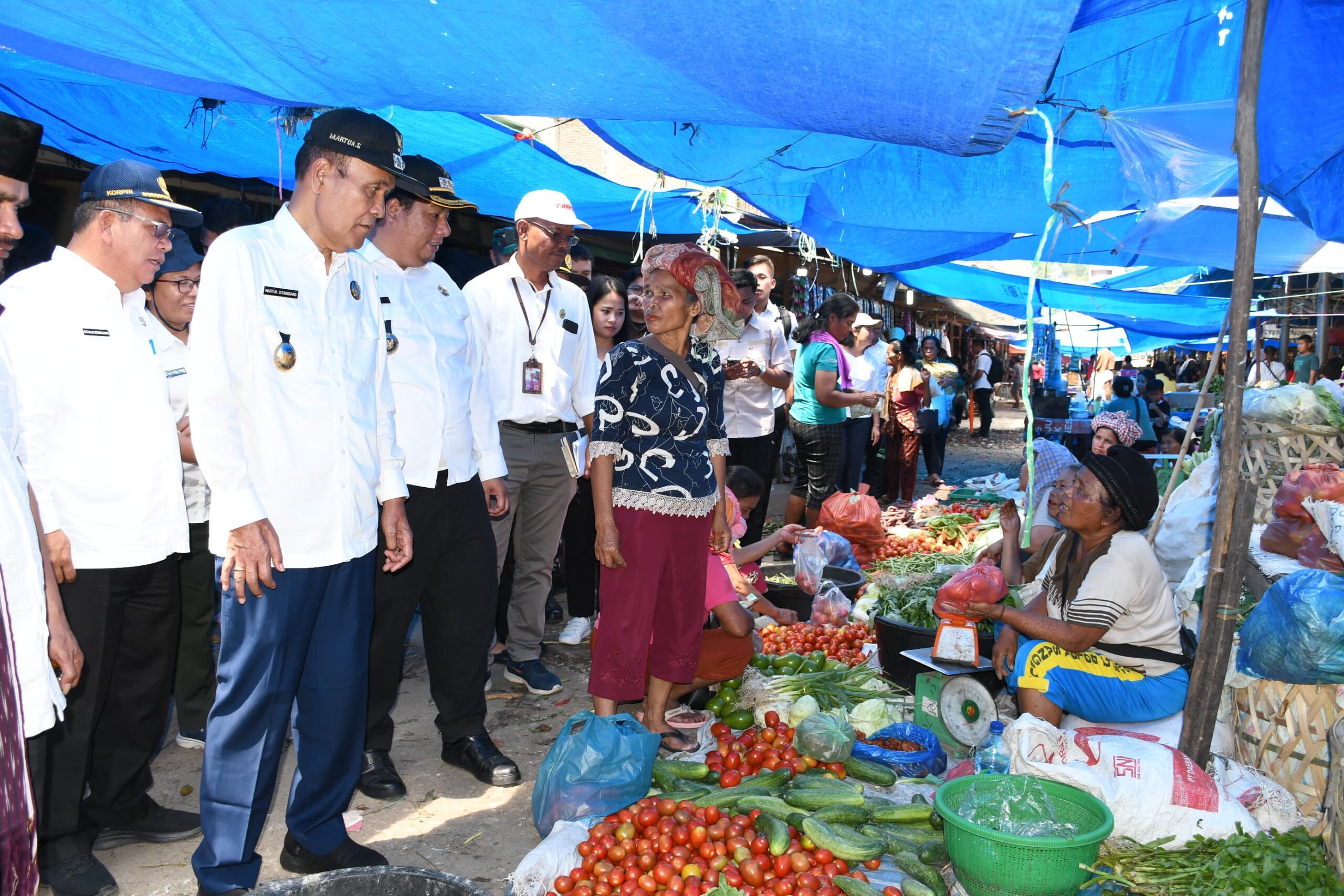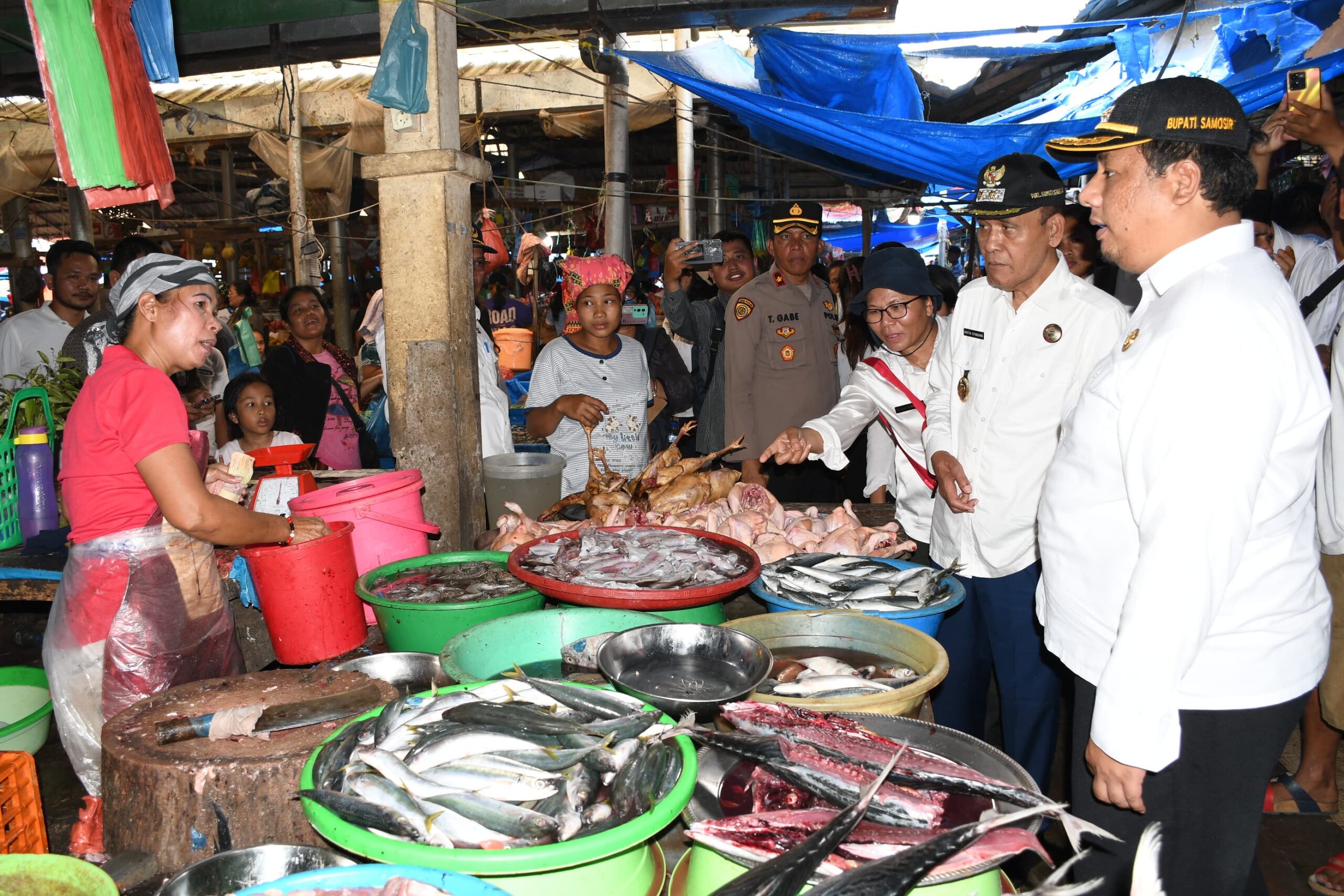 Menjelang Hari raya Idul Fitri 1445 H, Bupati Samosir Vandiko T. Gultom dan Wabup Martua Sitanggang bersama Forkopimda Kabupaten Samosir melakukan monitoring stok Bapokting dan stabilitas harga di Pasar Onan Baru Pangururan-Desa Pardomuan I, 27/03.