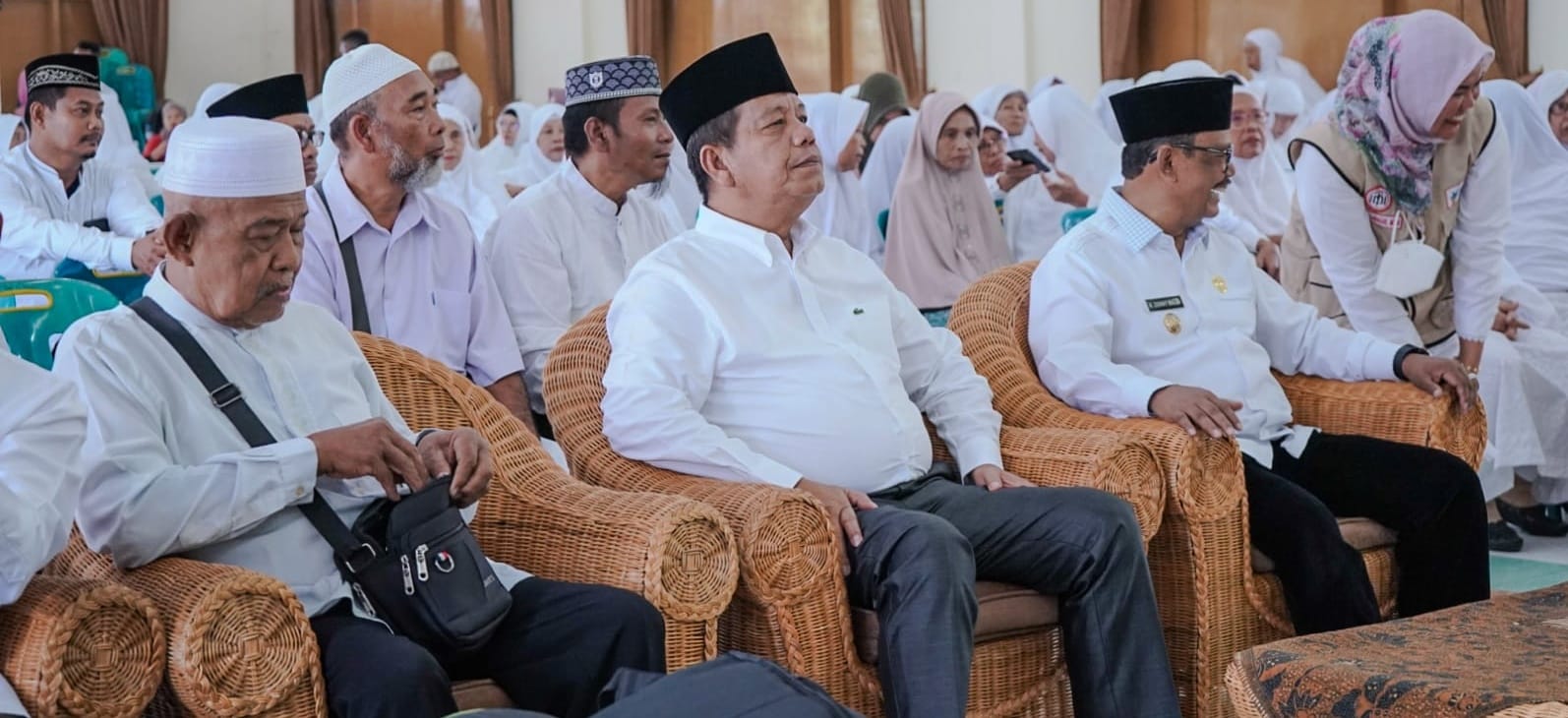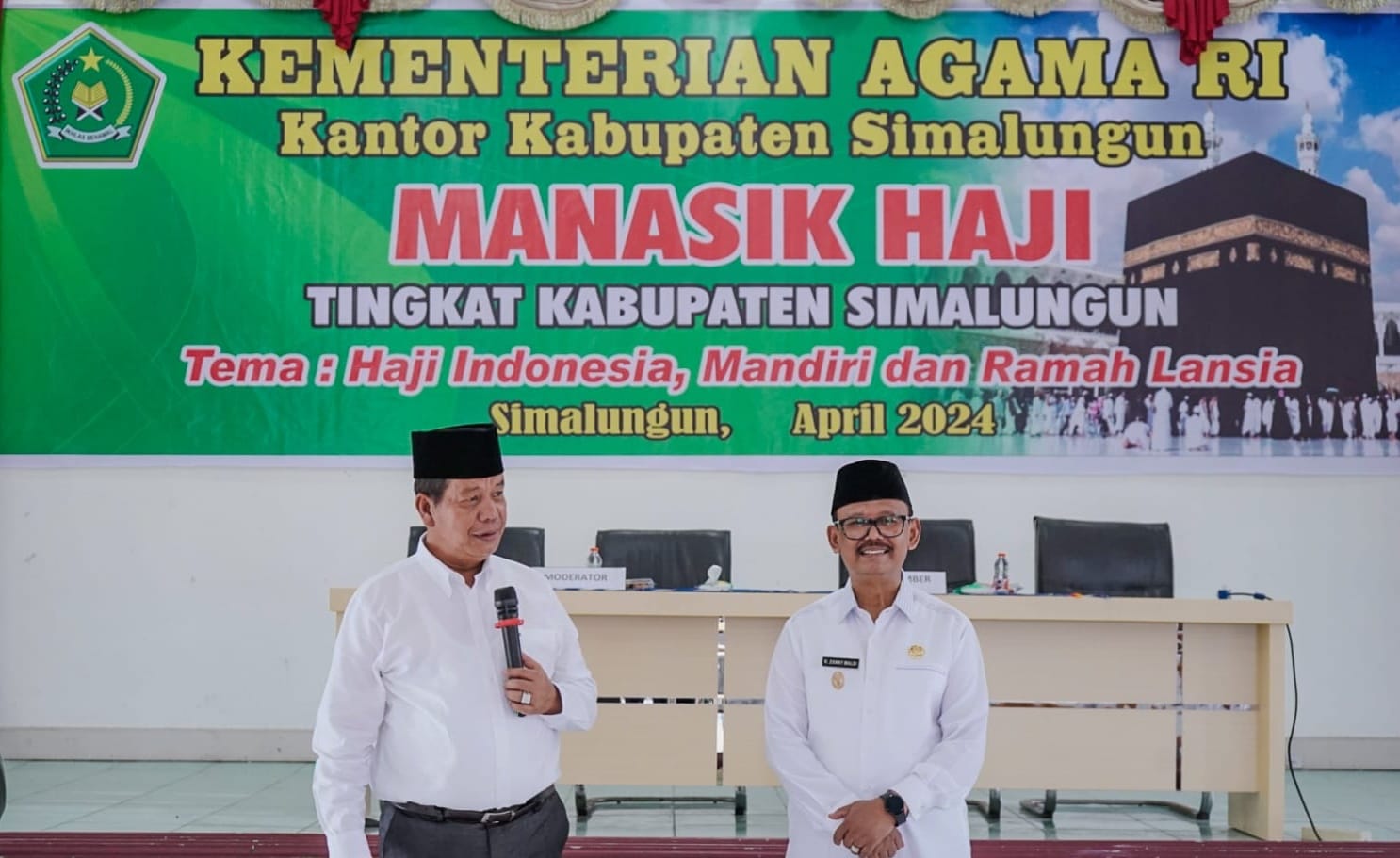 Bupati Simalungun Radiapoh Hasiholan Sinaga bersama Wakil Bupati H Zonny Waldi menghadiri kegiatan Manasik Haji Tingkat Kabupaten Simalungun Tahun 1445 H/2024 M, Kamis (25/4/2024).
