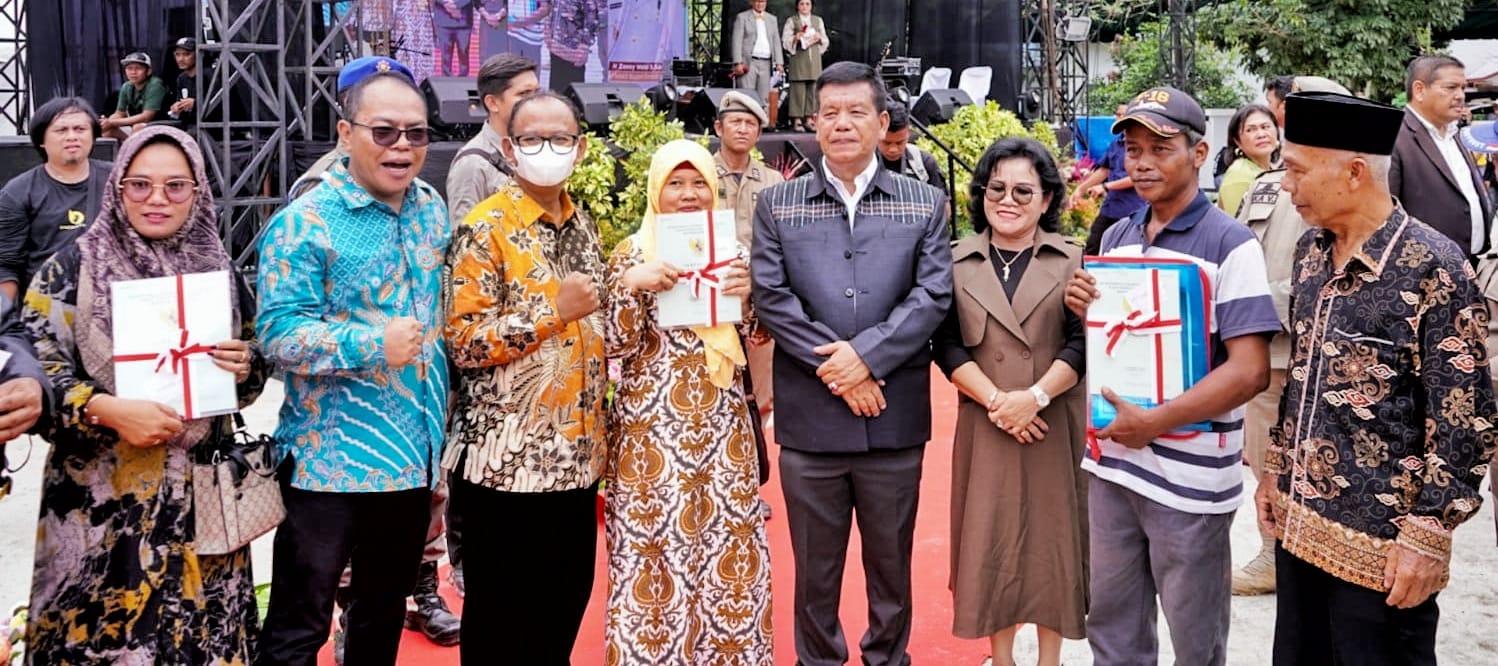 Acara yang juga dihadiri antara lain oleh Forkopimda, Sekda bersama para pejabat tinggi Pratama, administrator, pengawas dan para ASN, tokoh agama, tokoh adat dan tokoh masyarakat dan undangan lainnya itu dirangkai dengan pemberian tali asih kepada Lansia, anak yatim dan keluarga kurang mampu, pemberian sertifikat tanah, serta kartu kepesertaan BPJS ketenagakerjaan oleh Bupati dan Wakil Bupati Simalungun.