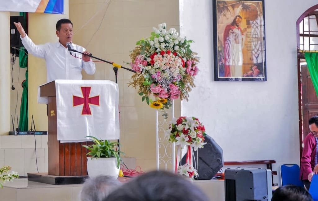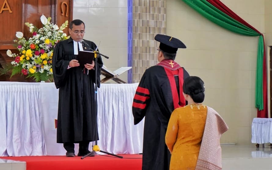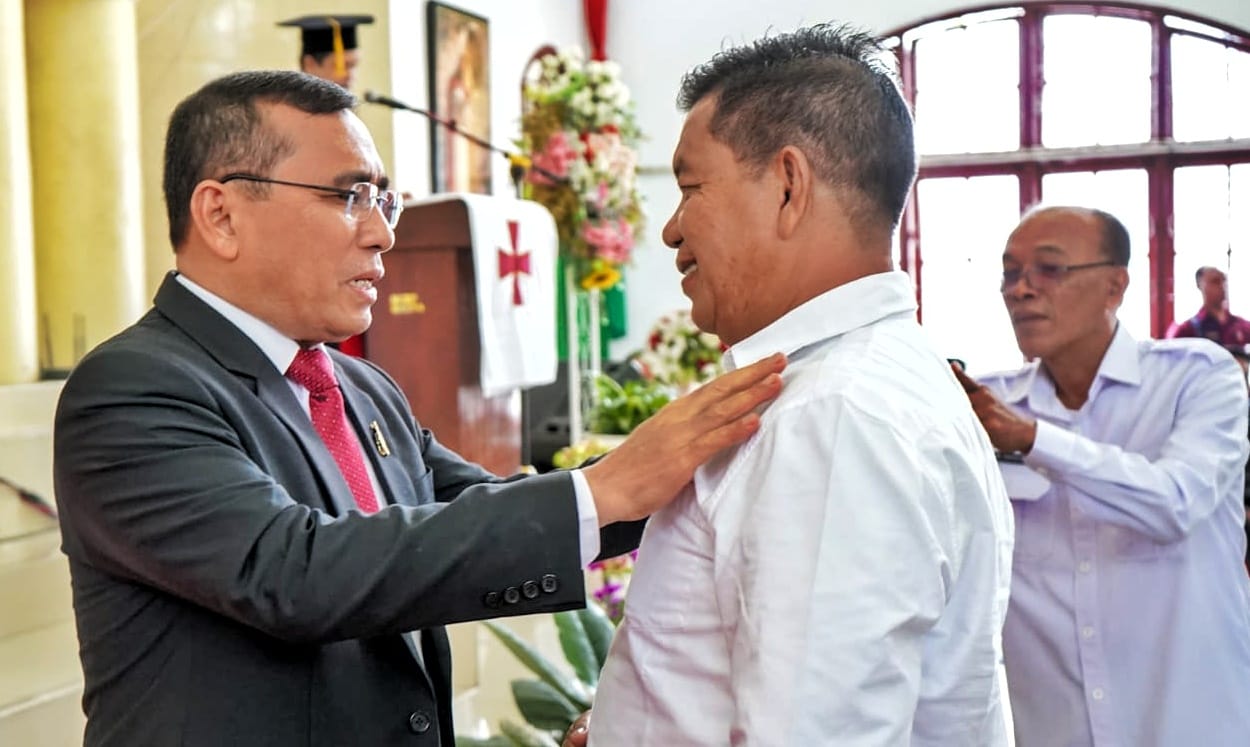 Bupati Simalungun Radiapoh Hasiholan Sinaga menghadiri pelantikan Pdt Dr. Sukanto Limbong sebagai Ketua Sekolah Tinggi Theologia (STT) HKBP Pematang Siantar masa bakti 2023-2027.