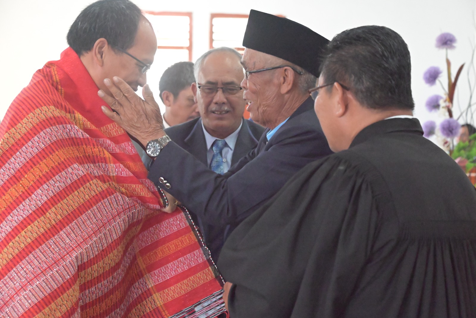 Usai kebaktian, Op. Horas Lumbangaol dan Sabar Banjarnahor mewakili jemaat HKBP Parsingguran mengucapkan terimakasih kepada Bupati Humbahas dan rombongan atas kehadirannya bisa mengikuti kebaktian bersama jemaat.