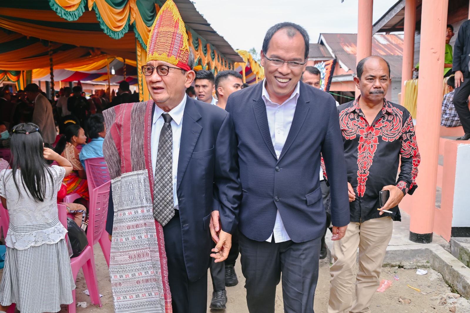 Bupati Humbahas Dosmar Banjarnahor, SE bersama pimpinan OPD (Organisasi Perangkat Daerah) termasuk Camat Onanganjang Posma Simanullang, Camat Sijamapolang Toga Halasan Simamora hadiri doa syukuran keluarga besar Ompu Solam Nainggolan di Huta Batuara Desa Hutajulu Kecamatan Onanganjang Kabupaten Humbang Hasundutan, Rabu , 5 Juli 2023.