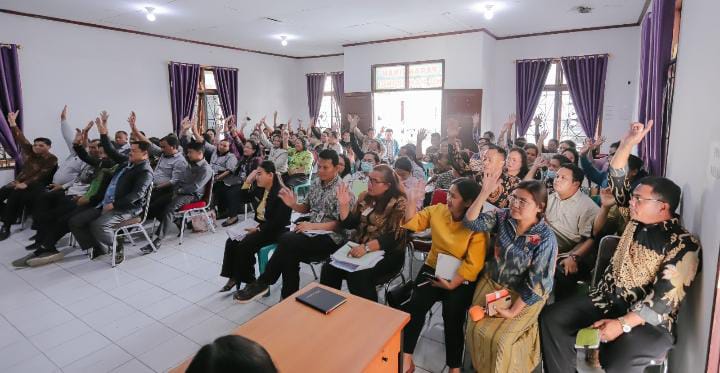Bupati Humbang Hasundutan Dosmar Banjarnahor, SE memimpin rapat penanganan Stunting di wilayah kerja UPT Puskesmas Paranginan, Jumat (23/6). Puskesmas Paranginan diharapkan bisa menurunkan angka stunting dengan signifikan.