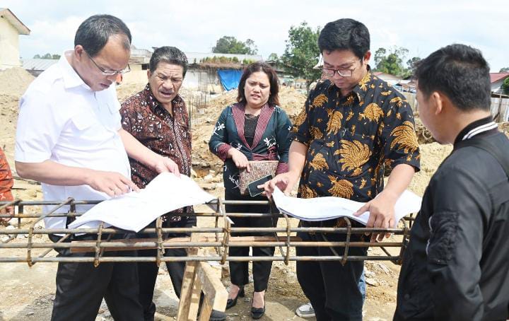 Bupati Humbahas Dosmar Banjarnahor, SE didampingi Inspektur Drs BP Siahaan, Asisten Administrasi Umum Drs Janter Sinaga, Kadis Kopenaker Nurlija Elita Pasaribu, Kadis Perumahan dan Kawasan Permukiman (PKP) Anggiat Simanullang, dan lainnya meninjau proyek pembangunan PLUT (Pusat Layanan Usaha Terpadu) di Doloksanggul, Kamis, 6 Juli 2023. Nilai dalam pembangunan ini sebesar Rp.4.003.680.416.