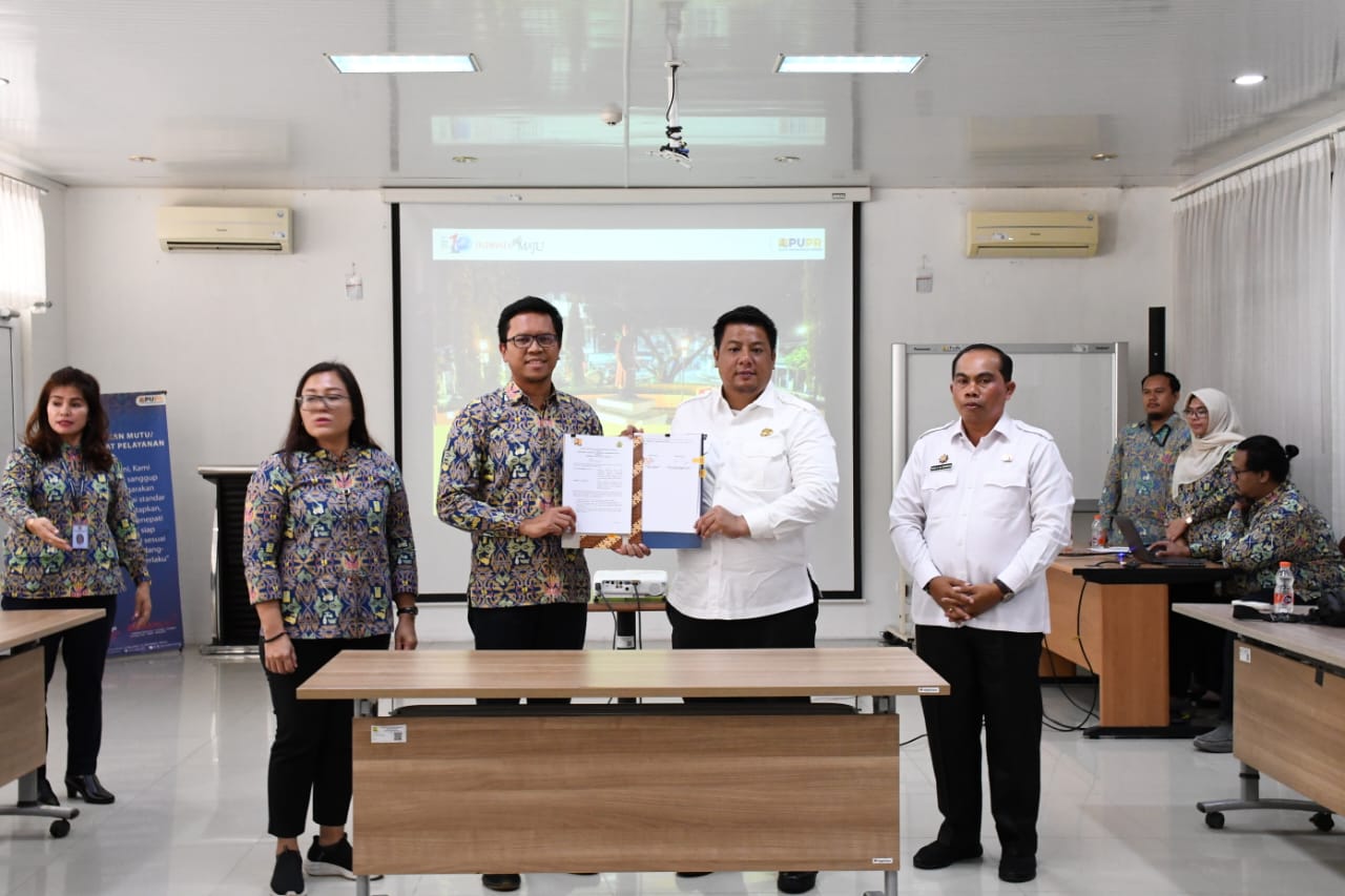 Bupati Samosir Vandiko Timotius Gultom,ST lakukan penandatangan serah terima pengelolaan Aset Barang Milik Negara (BMN) antara Direktorat Jenderal Cipta Karya Kementerian PUPR dengan Pemerintah Kabupaten Samosir di Kantor Balai Pengembangan Kompetensi PUPR Wilayah I Medan yang berlokasi di Jl. Busi No. 2 Medan, (06/03).