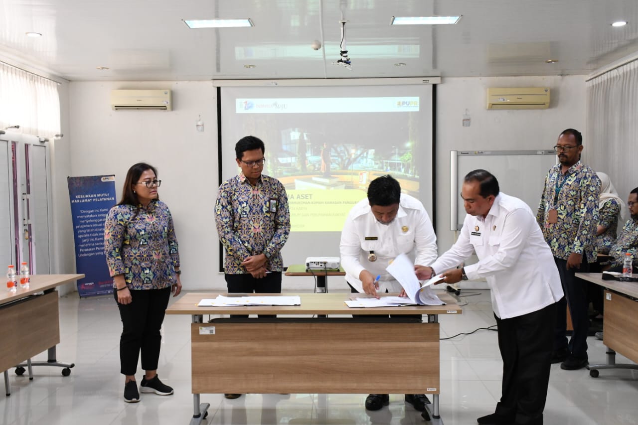 Bupati Samosir Vandiko Timotius Gultom,ST lakukan penandatangan serah terima pengelolaan Aset Barang Milik Negara (BMN) antara Direktorat Jenderal Cipta Karya Kementerian PUPR dengan Pemerintah Kabupaten Samosir di Kantor Balai Pengembangan Kompetensi PUPR Wilayah I Medan yang berlokasi di Jl. Busi No. 2 Medan, (06/03).