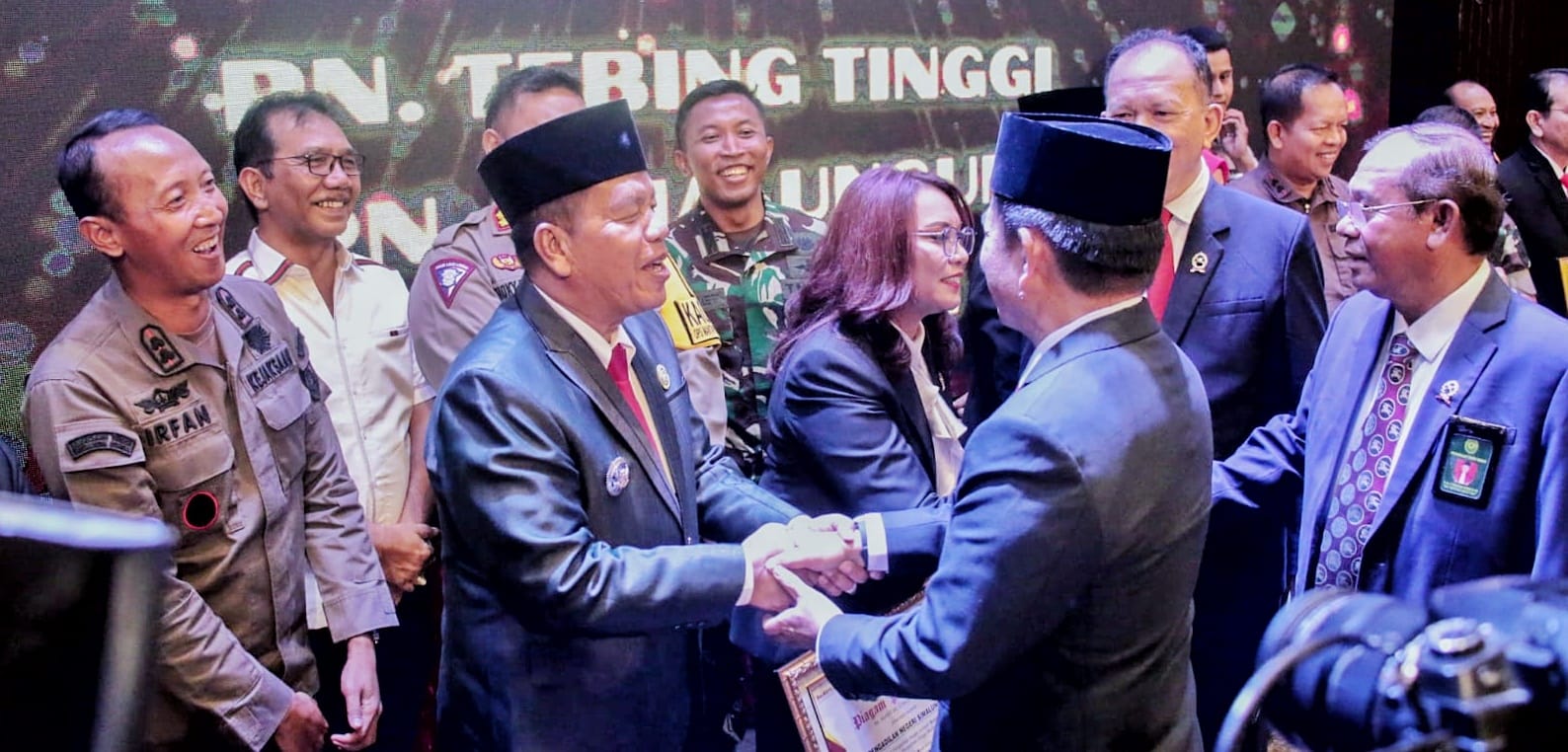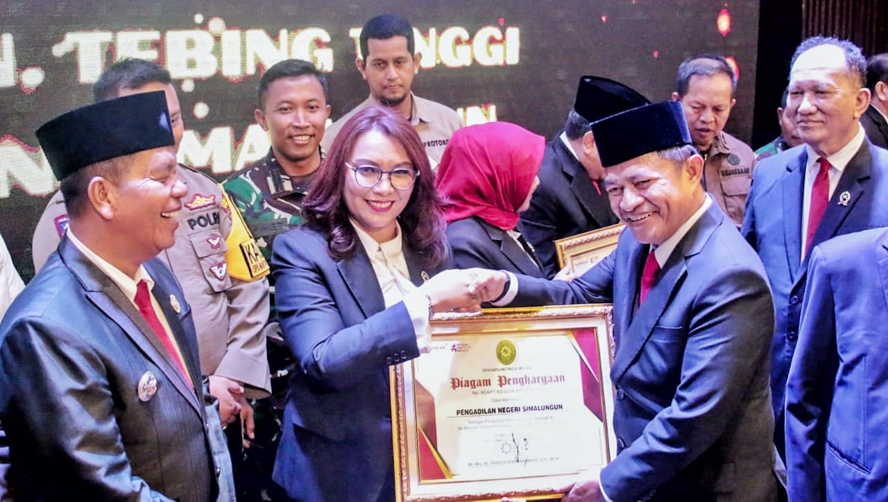 Dalam menerima penghargaan tersebut, Ketua Pengadilan Negeri Simalungun didampingi Bupati dan Forkopimda.