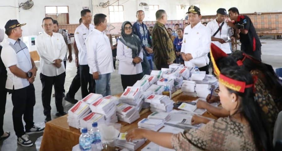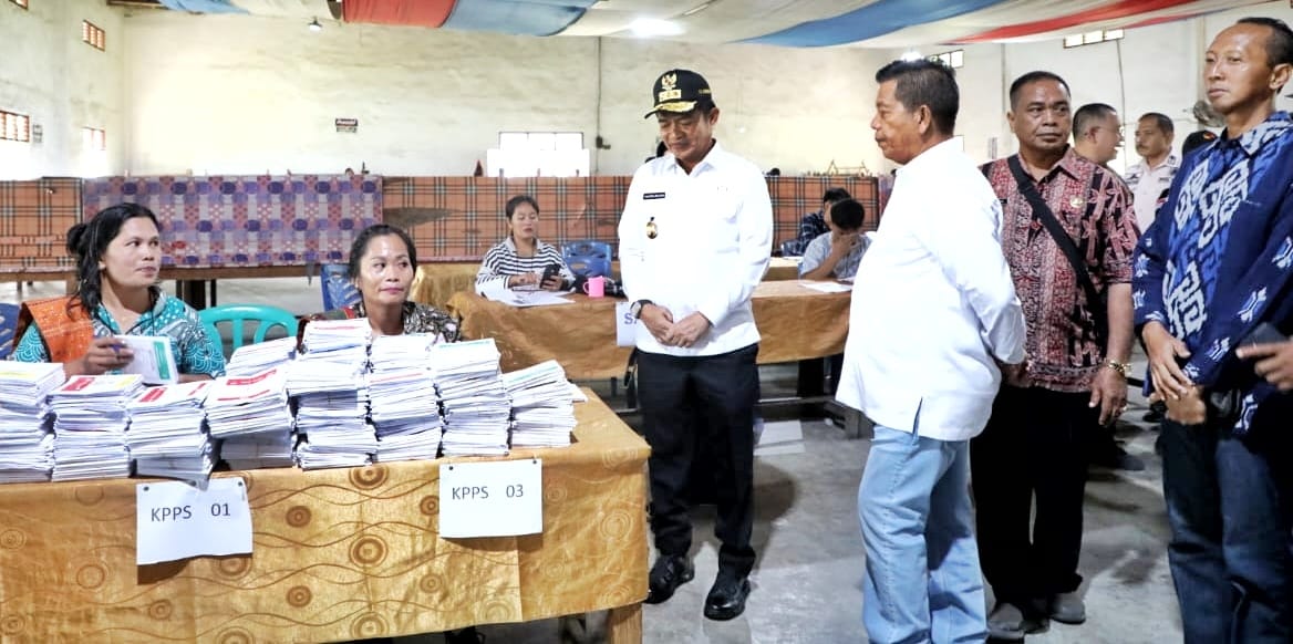 Bupati Simalungun Radiapoh Hasiholan Sinaga mendampingi Penjabat (Pj) Gubernur Sumatera Utara (Gubsu) Hasanuddin melakukan monitoring pelaksanaan Pemilu Tahun 2024 di Tanoh Habonaron Do Bona, Kabupaten Simalungun, Sumut, Rabu (14/2/2024).