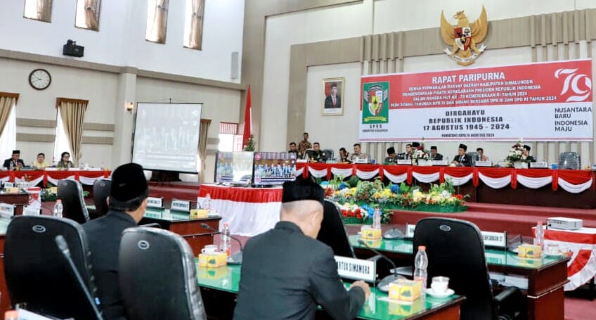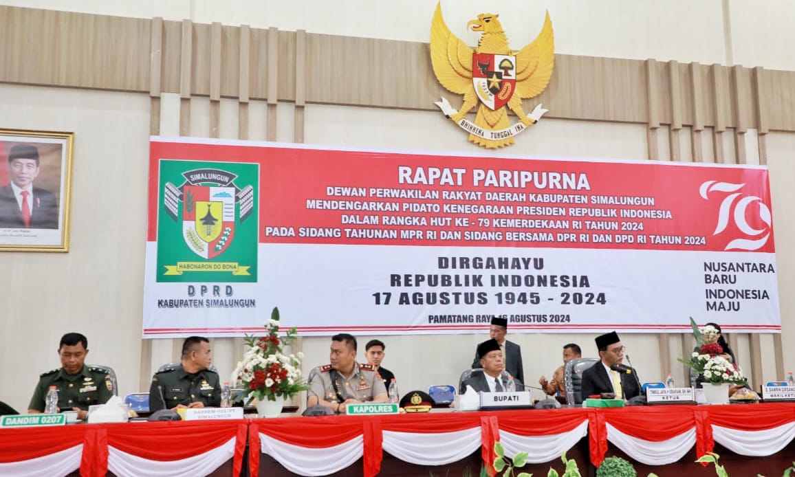 Bupati Simalungun Radiapoh Hasiholan Sinaga bersama Forkopimda menghadiri rapat paripurna DPRD Simalungun, yang berlangsung di Gedung DPRD Simalungun, Pamatang Raya, Sumut, Jum’at (16/8/2024).