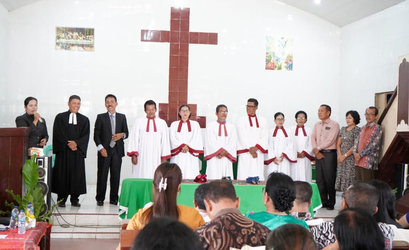 Ibadah Minggu yang berjalan tertib, aman dan penuh khitmad tersebut dipimpin oleh Pdt Noalser Purba, Minggu (18/8/2024).