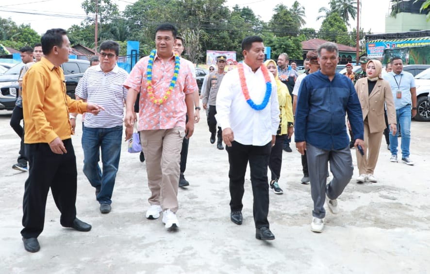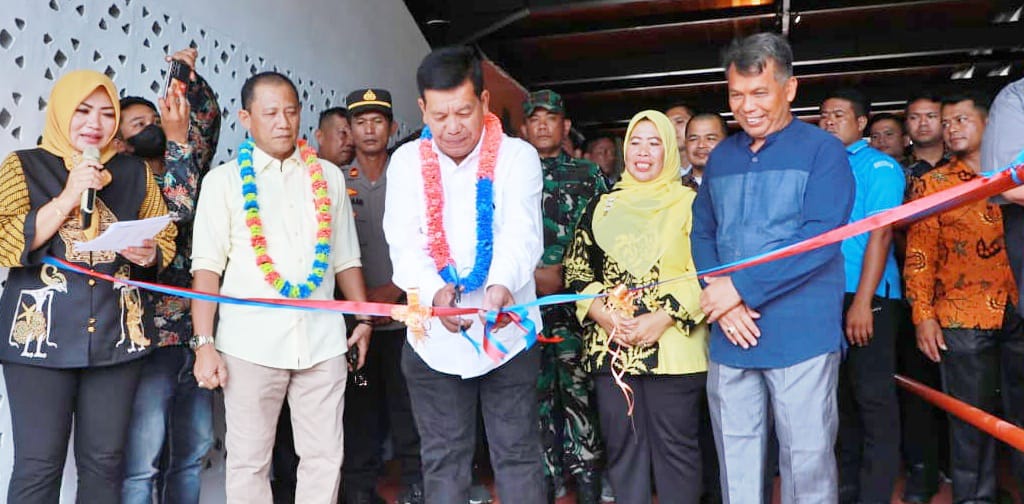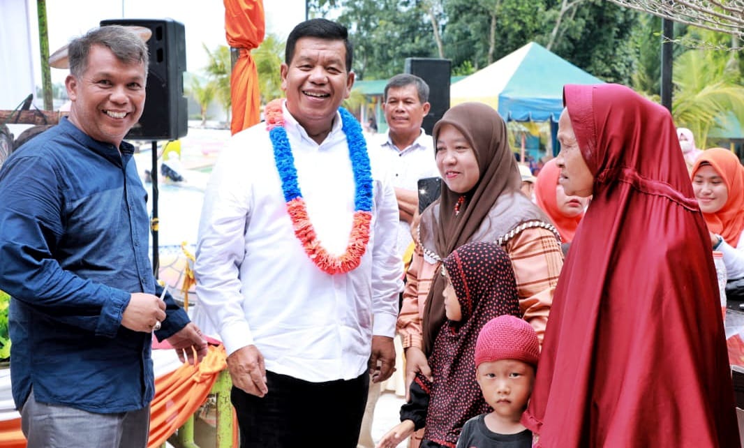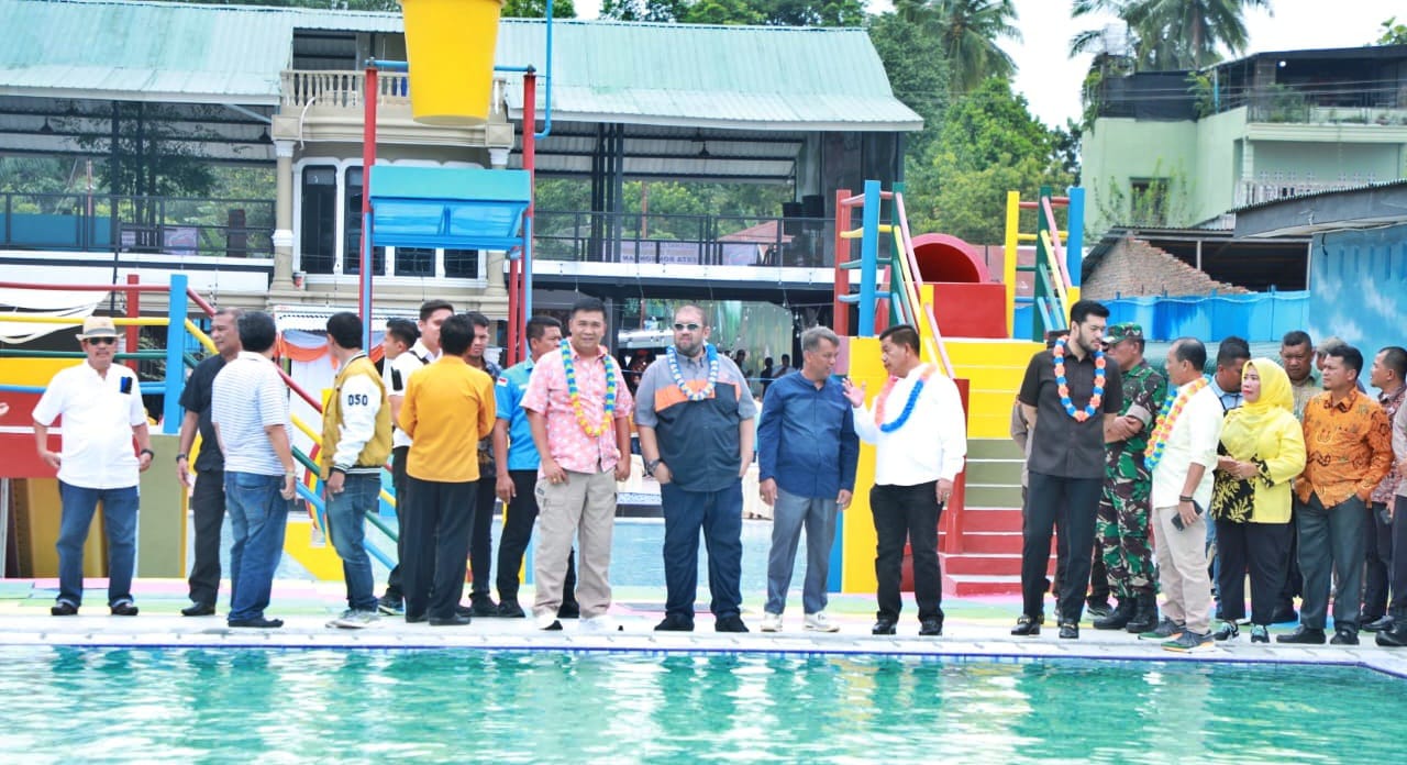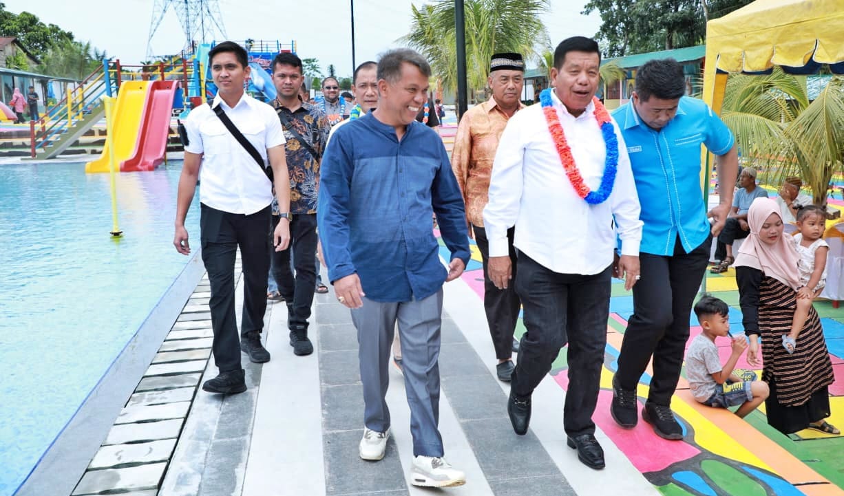 Bupati Simalungun Radiapoh Hasiholan Sinaga menghadiri Grand Opening KS Barkh Water Boom Karang dan KS Barkh Tea serta Coffee yang berlokasi di Nagori Karang Sari Kecamatan Gunung Maligas, Simalungun, Sumut, Jum’at (3/11/2023).