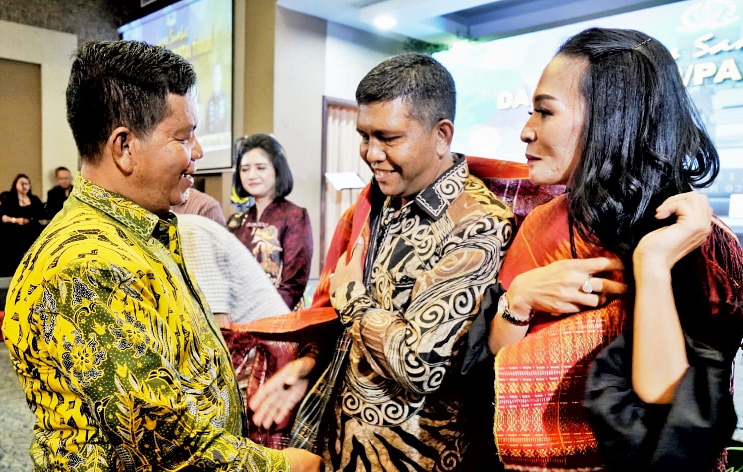 Selanjutnya, Bupati Simalungun menyerahkan Cendramata kepada Kolonel Inf Agustatius Sitepu bersama istri.