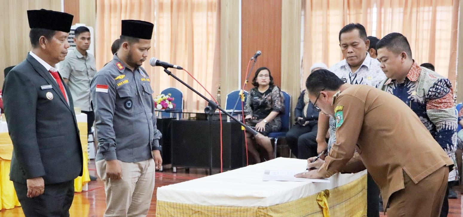 Bupati Simalungun Radiapoh Hasiholan Sinaga menghadiri pelantikan pengurus DPC Asosiasi Kepala Desa Seluruh Indonesia (AKSI) masa Bhakti 2024-2029, di Balei Harungguan Djabanten Damanik Kantor Bupati Simalungun, Pamatang Raya, Sumut, Kamis (12/9/2024).