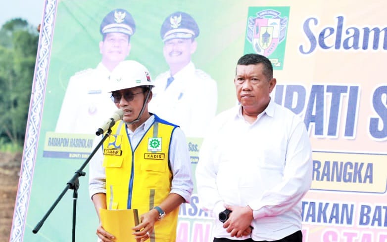 Bupati Simalungun Radiapoh Hasiholan Sinaga melakukan peletakan batu pertama pembangunan Stadion Mini di Ibukota Kabupaten Simalungun, Pamatang Raya, Kecamatan Raya, Sumut, Jum’at (13/9/2024).