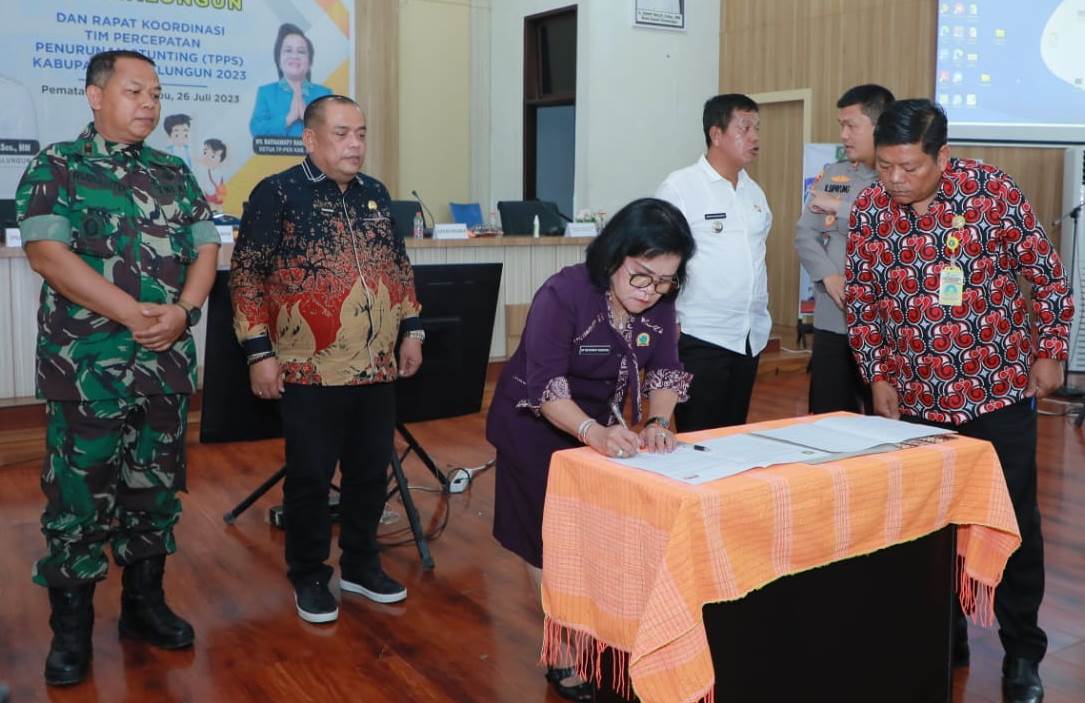 Pemerintah Kabupaten (Pemkab) Simalungun menggelar Rembuk Stunting dan Rapat koordinasi (Rakor) Tim Percepatan Penurunan Stunting (TPPS) Kabupaten Simalungun 2023 yang dipimpin langsung oleh Bupati Simalungun Radiapoh Hasiholan Sinaga, di balai Harungguan Djabanten Damanik, Pematang Raya, Simalungun, Sumut, Rabu (26/7/2023).