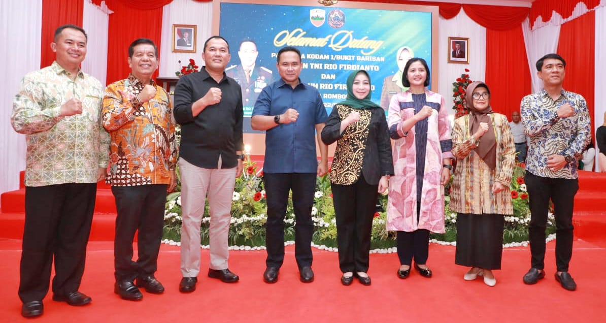 Bupati Simalungun Radiapoh Hasiholan Sinaga SH MH menyambut dengan baik dan penuh dengan kekeluargaan kehadiran Pangdam I/BB Mayjen TNI Rio Ferdianto dan Ny Galuh Rio Ferdianto saat tiba di bumi Habonaron Do Bona.