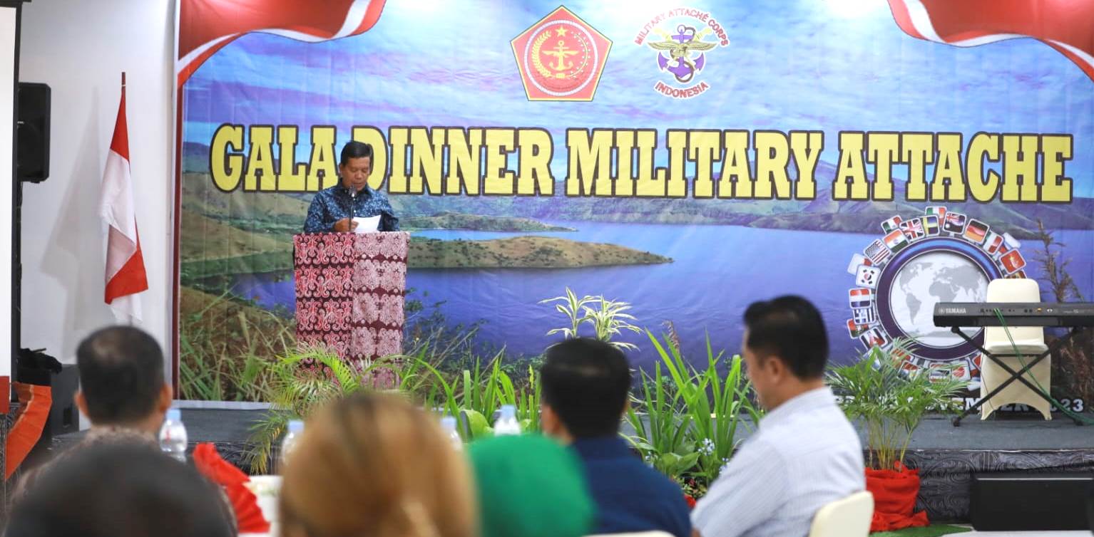 Kehadiran Rombongan Militari Attache Tour di Kabupaten Simalungun bersama Pangdam I/BB Mayjen TNI Muhammad Hasan dan rombongan disambut dengan acara gala dinner di Hotel Khas Parapat, Kecamatan Girsang Simpangan Bolon, Simalungun, Sumut, Kamis malam (23/11/2023).