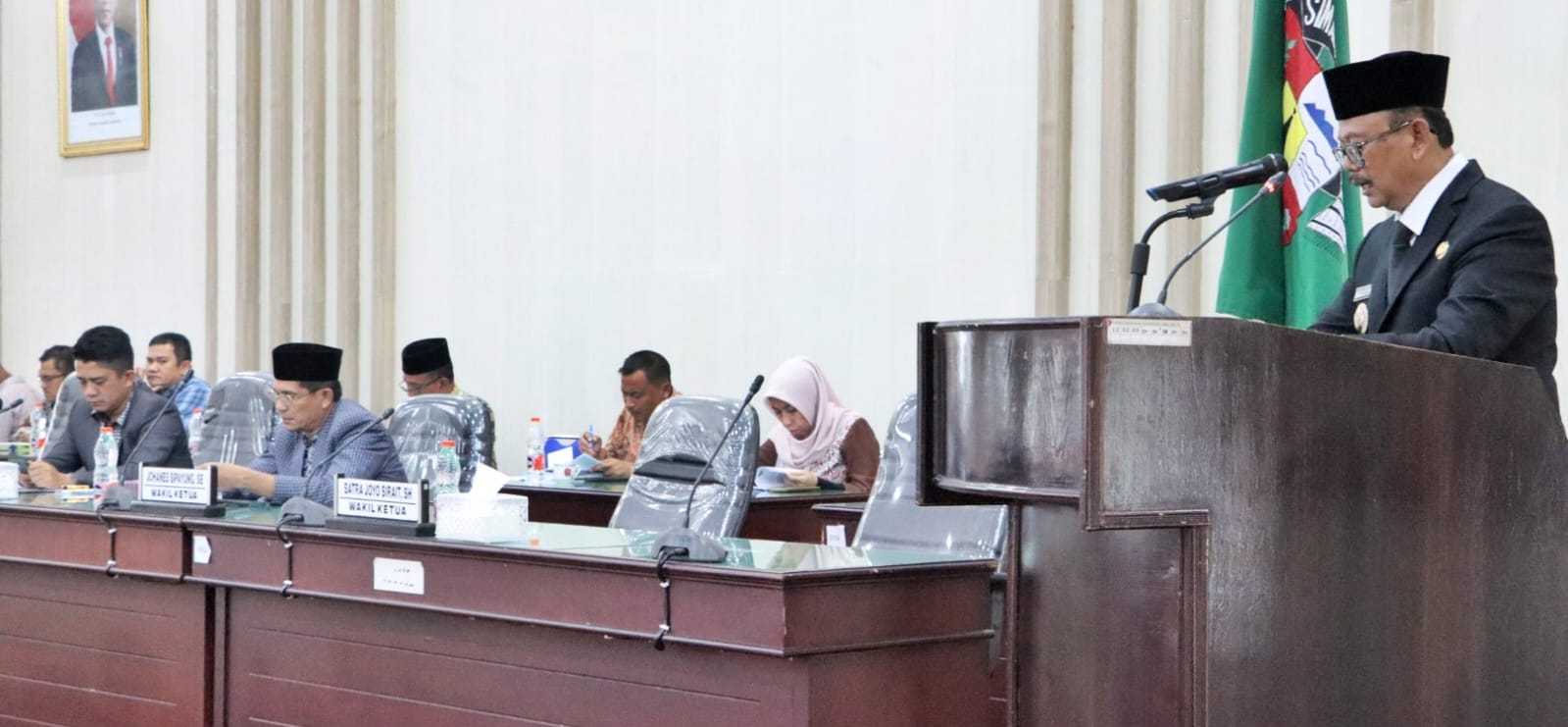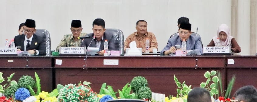 Rapat paripurna itu di hadiri oleh para anggota DPRD Simalungun, para pejabat tinggi pratama, administrator dan pengawas di lingkungan Pemerintah Kabupaten (Pemkab) Simalungun.