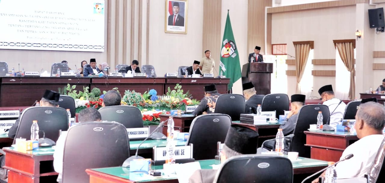Bupati Simalungun, Anton Achmad Saragih menyampaikan rancangan peraturan daerah (Ranperda) tentang pertanggungjawaban pelaksanaan APBD Tahun Anggaran (TA) 2024 dan Laporan Hasil Pemeriksaan (LHP) BPK-RI atas Laporan Keuangan Pemerintah Kabupaten Simalungun Tahun 2024.