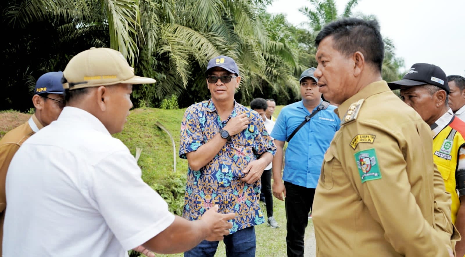 Bupati Simalungun Radiapoh Hasiholan Sinaga melakukan kunjungan kerja (kunker) ke Kecamatan Bosar Maligas Kabupaten Simalungun, Sumut, dalam rangka meninjau kondisi infrastruktur jalan penghubung Nagori Dusun Pengkolan dengan Kelurahan Bosar Maligas, Rabu (7/2/2024).