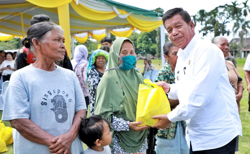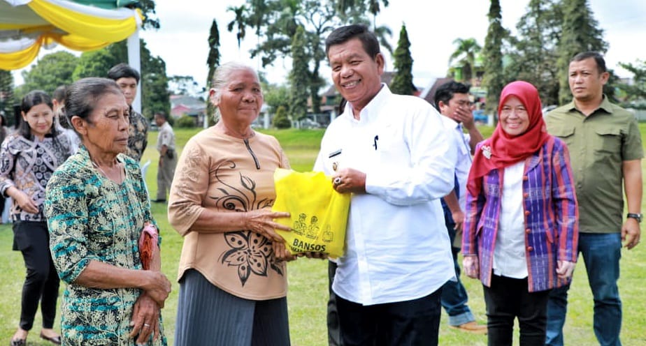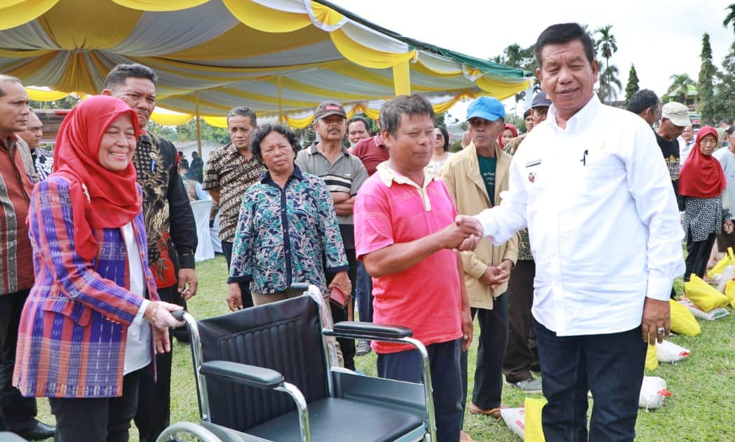 Dalam kesempatan itu, Bupati Simalungun Forkopimda memberikan bantuan bantuan kepada masyarakat/lansia di Kecamatan Jorlang Hataran berupa, 10 kursi roda, Tongkat membantu berjalan, dan 100 paket sembako.