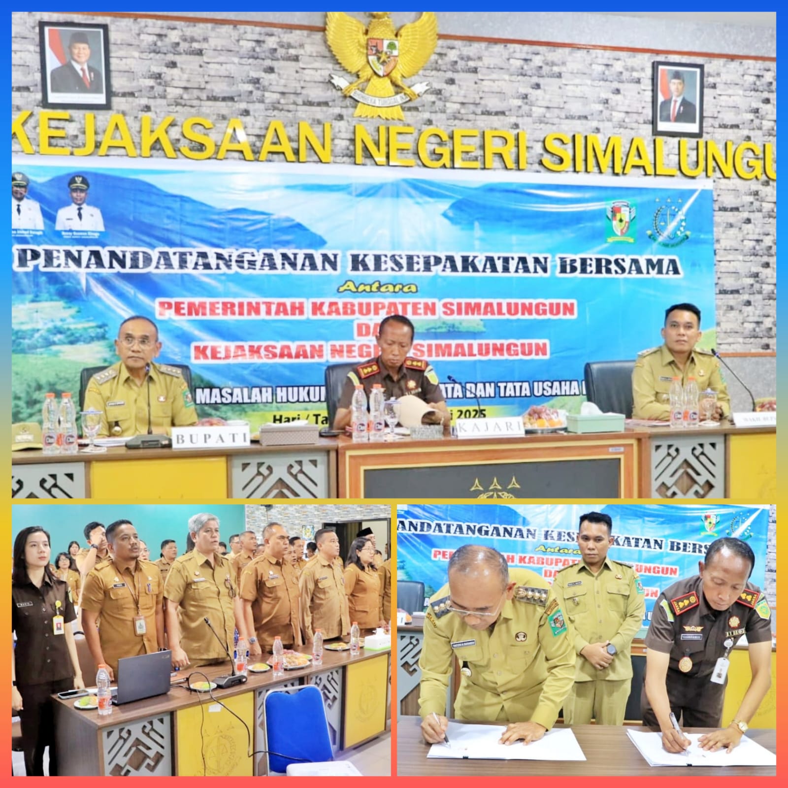 Penandatanganan nota kesepakatan bersama antara Pemerintah Kabupaten Simalungun dan Kejaksaan Negeri Simalungun disaksikan kepala organisasi perangkat daerah di lingkungan Pemkab Simalungun. Diakhiri dengan pemberian cendramata oleh Bupati Simalungun kepada Kajari Simalungun.