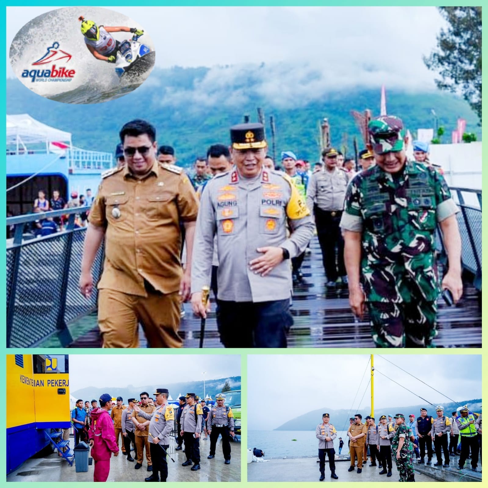 Kapolda Sumut, Irjen Pol Agung Setya Imam Effendi, beserta rombongan mengecek kesiapan pengamanan Event Aquabike World Championship 2023 di Water Front City di Kecamatan Pangururan, Kabupaten Samosir, Selasa (21/11/2023).