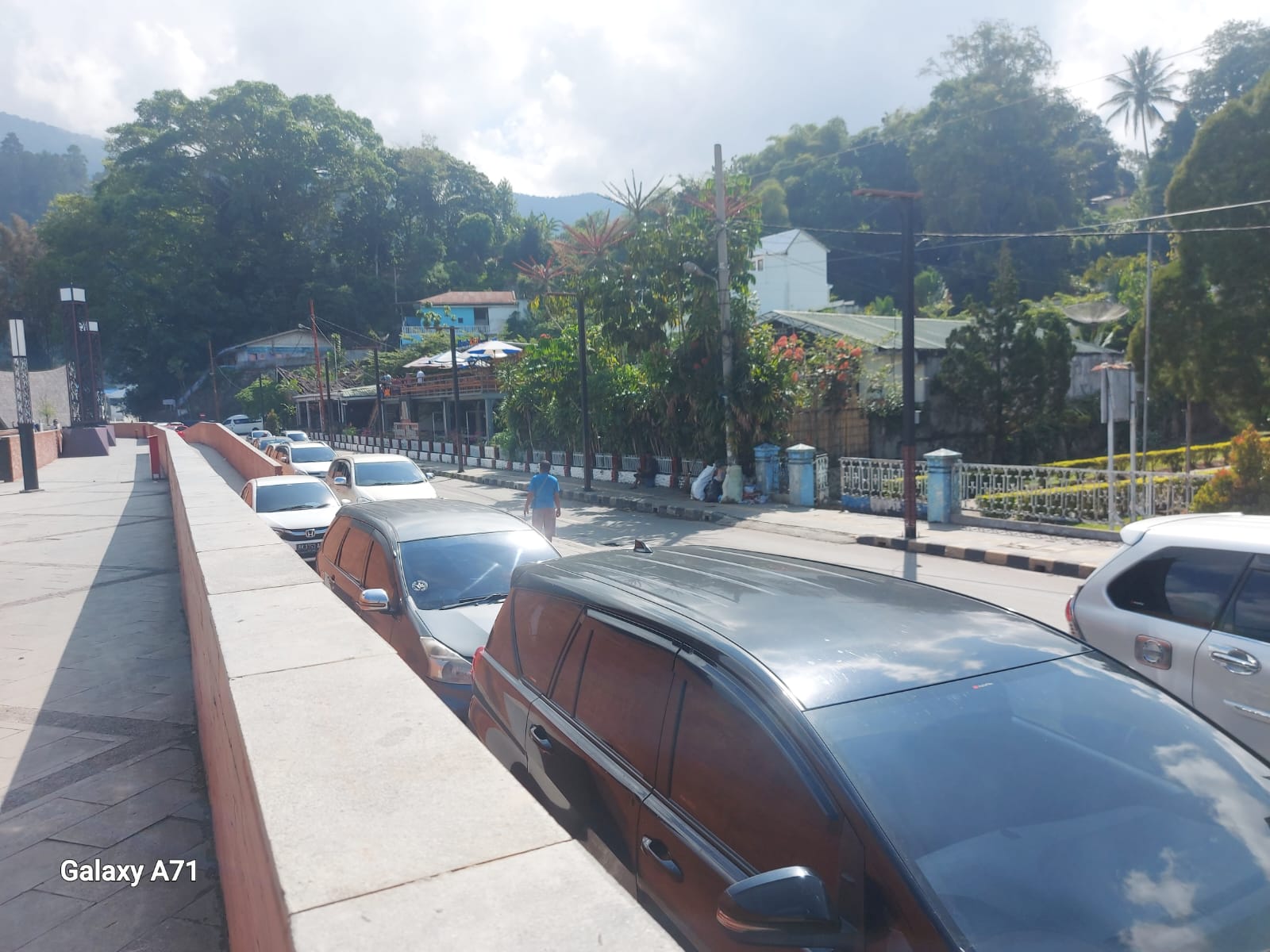 Akhirnya mobil Parkir ini terpaksa dinaikkan ke atas area tembok pertama, karena tidak ada lokasi parkir di Dermaga Atsari Parapat.