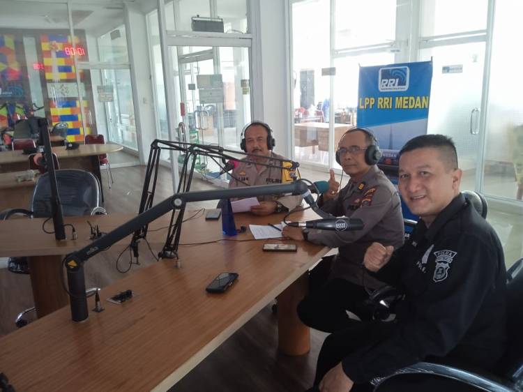 Narasumber Kanit Binmas AKP M. Subakir SH dan Aiptu Ngatijan Bhabinkamtibmas Polsek Sunggal, didampingi dari Humas Polda Sumatera Utara Jamaluddin S Sos Paur Subbid Penmas dan Aiptu Widodo Baur Subbid Penmas, serta dipandu oleh host dari RRI Medan Ricky Subandi.